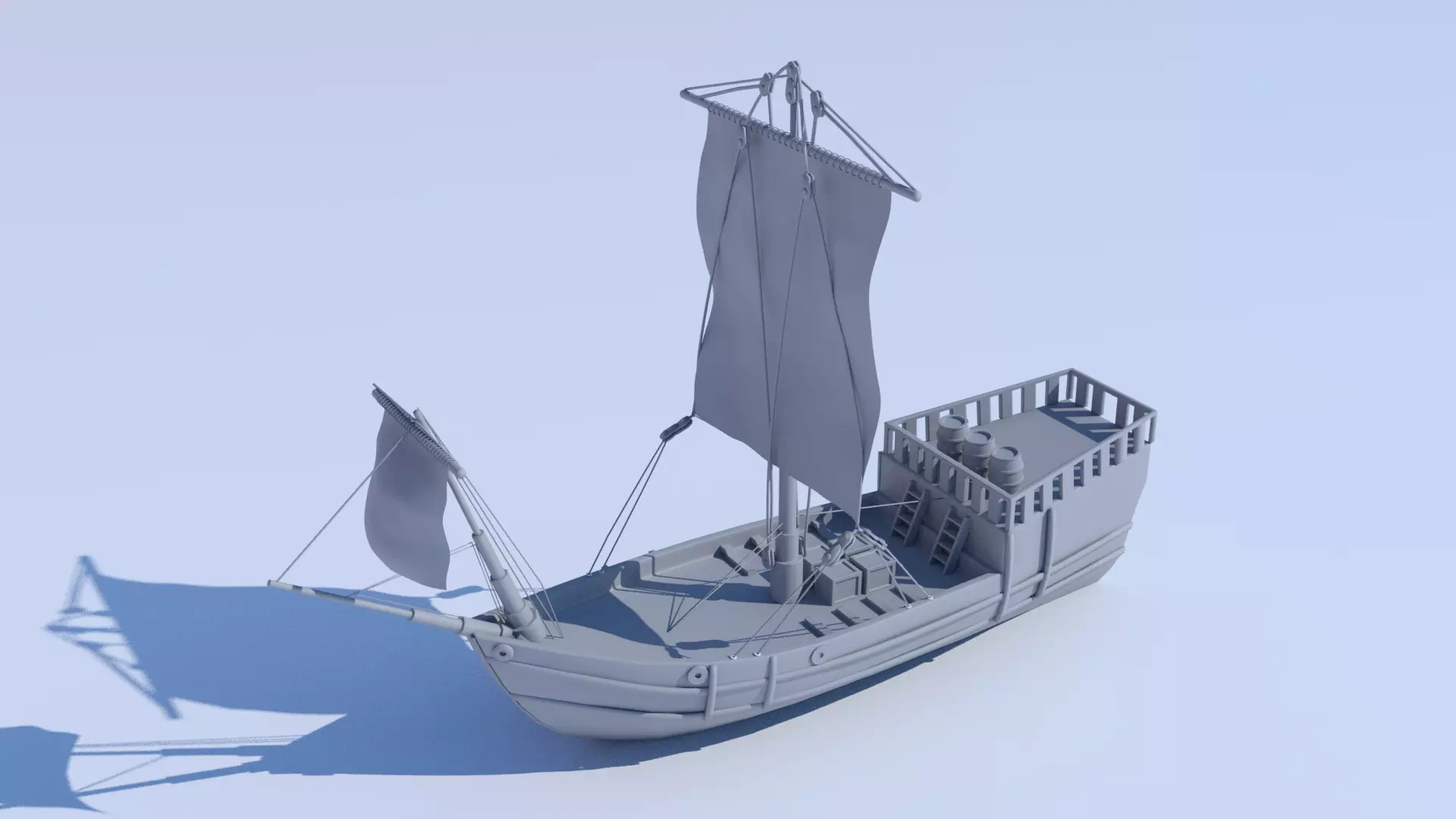 This Ship is inspired in La Pinta made entirely in 3ds Max, UVS are mixed between overlap and non overlap, materials and textures are not included, optimized for real time rendering.