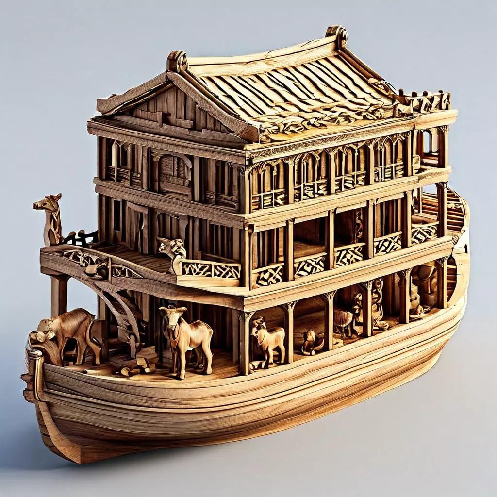 This meticulously crafted 3D model depicts Noah's Ark, complete with intricate details and a variety of animal figures. Ideal for game development, architectural visualization, religious or historical presentations, and educational projects. Available in multiple formats including GLB, OBJ, STL, FBX, and DAE, ensuring compatibility with various software. Optimized for both real-time applications and high-quality static renders. Features clean topology, UV unwrapped meshes, and PBR textures for realistic rendering. Suitable for close-up shots and animation. The model's low-poly nature makes it efficient for game engines while retaining a high level of detail. This historically significant vessel is faithfully recreated, making it a versatile asset for diverse projects. Perfect for scenes depicting biblical stories, historical simulations, or educational games. Create stunning visuals with this detailed and versatile Noah's Ark 3D model.