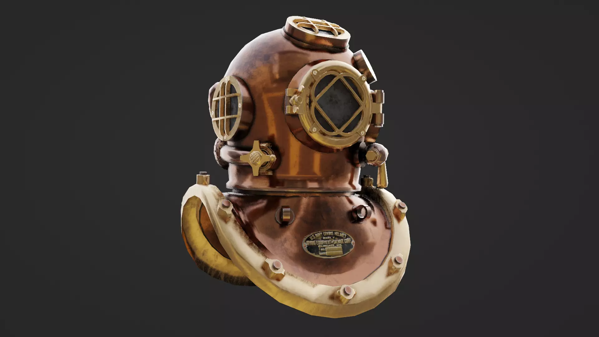 3D Old Copper Diving Helmet - low poly model. Model was made in Blender, textures were made with Substance Painter.Model is Game-ready.