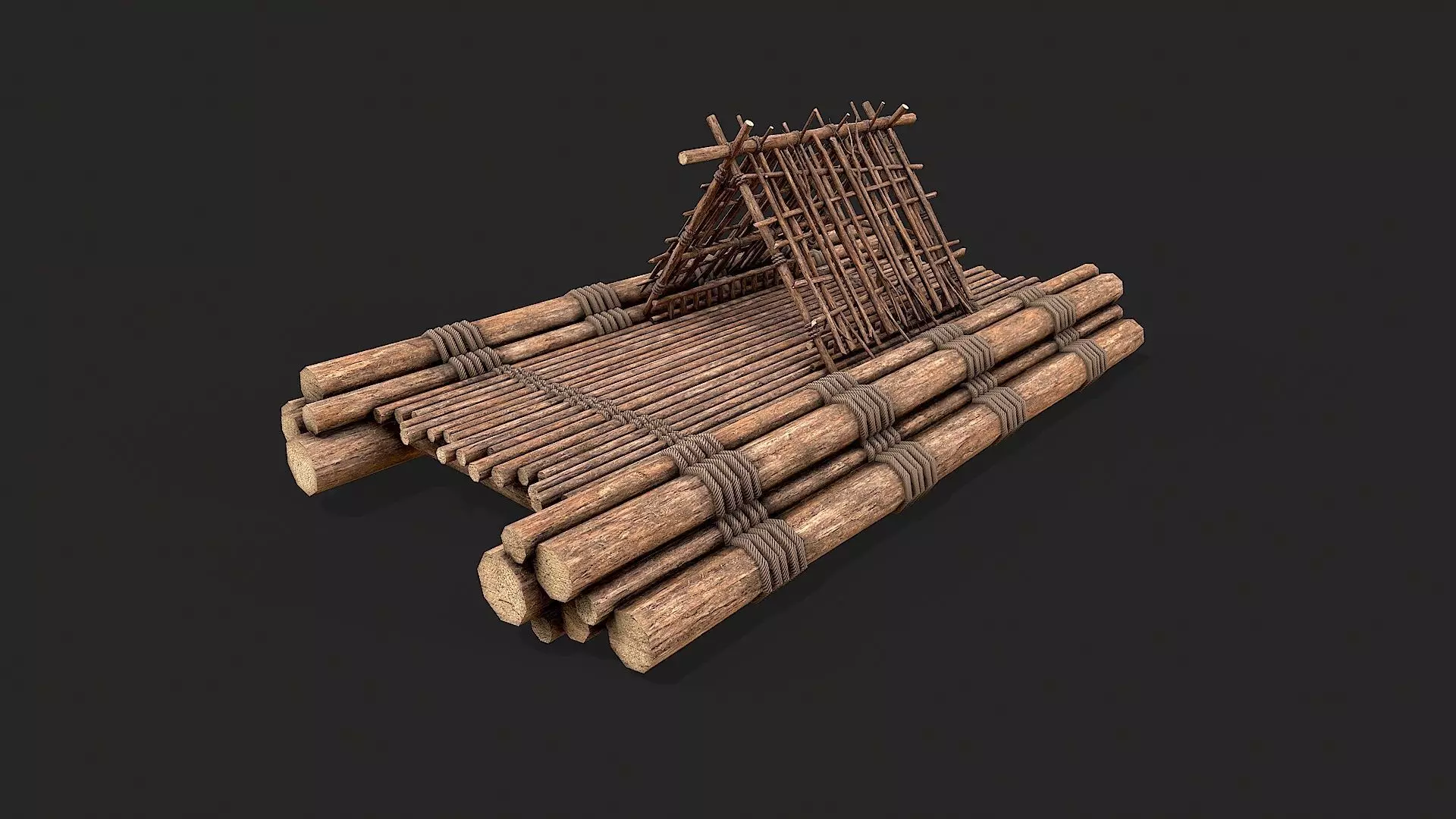 Primitive Wooden Raft Survival Boat Low-poly 3D model