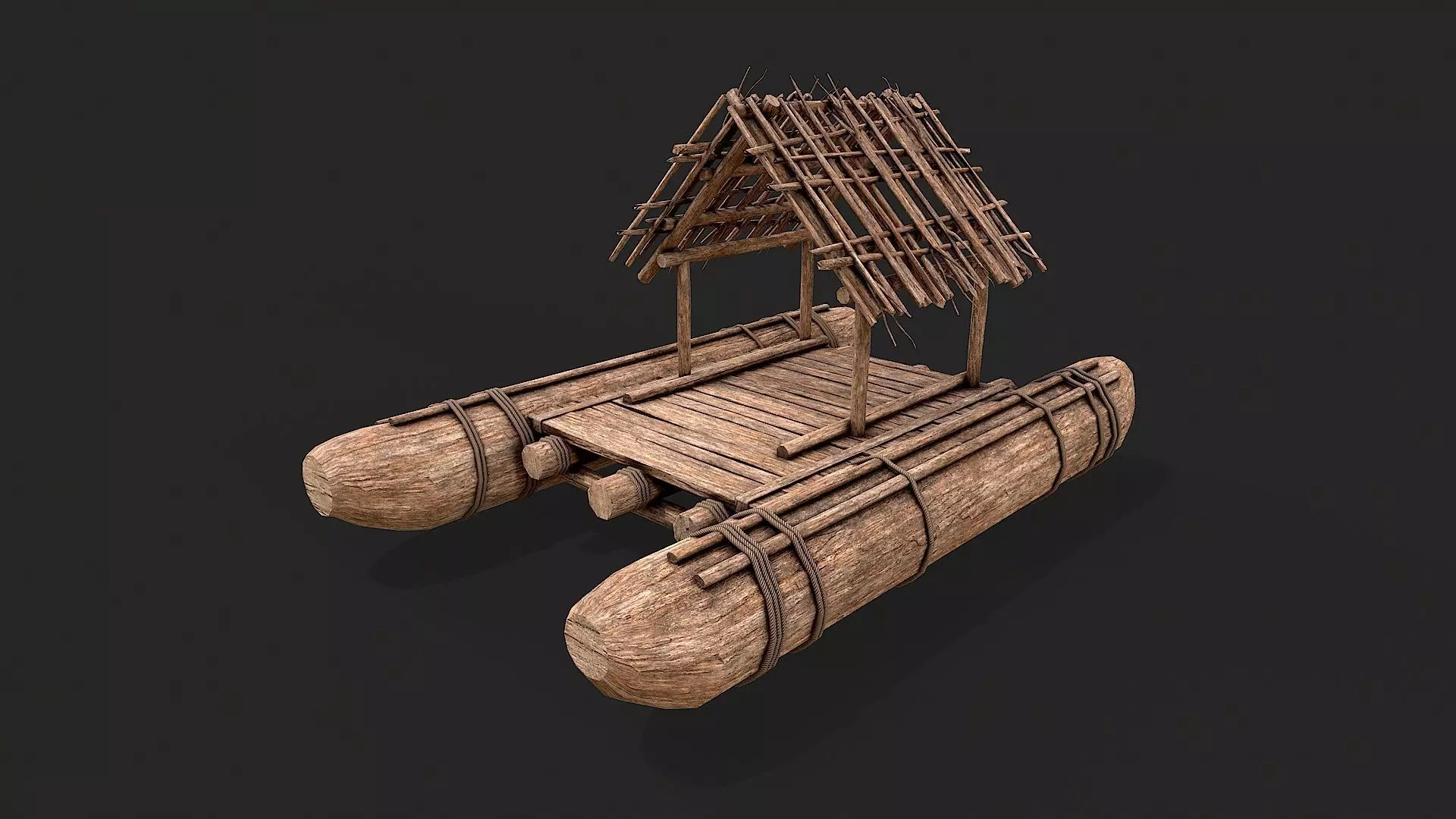 Primitive Wooden Raft Survival Boat Hut Shelter Low-poly 3D model