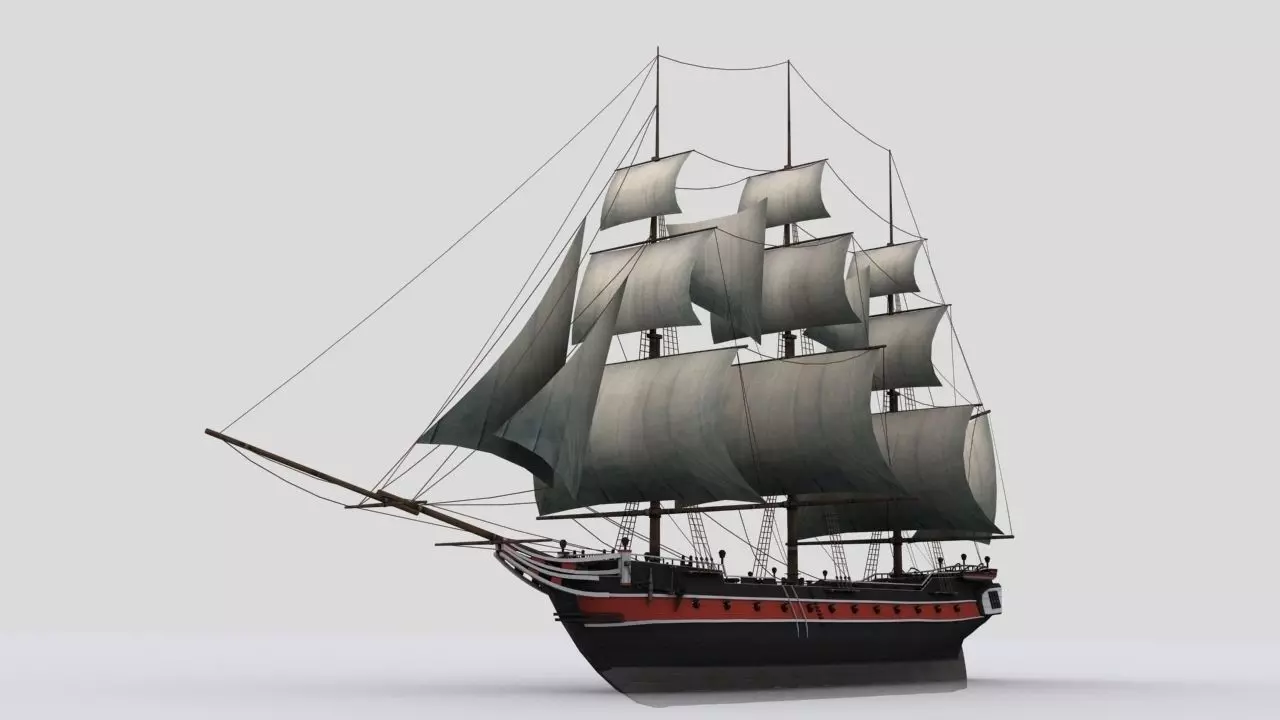 Sailing warship corvette Low-poly 3D model