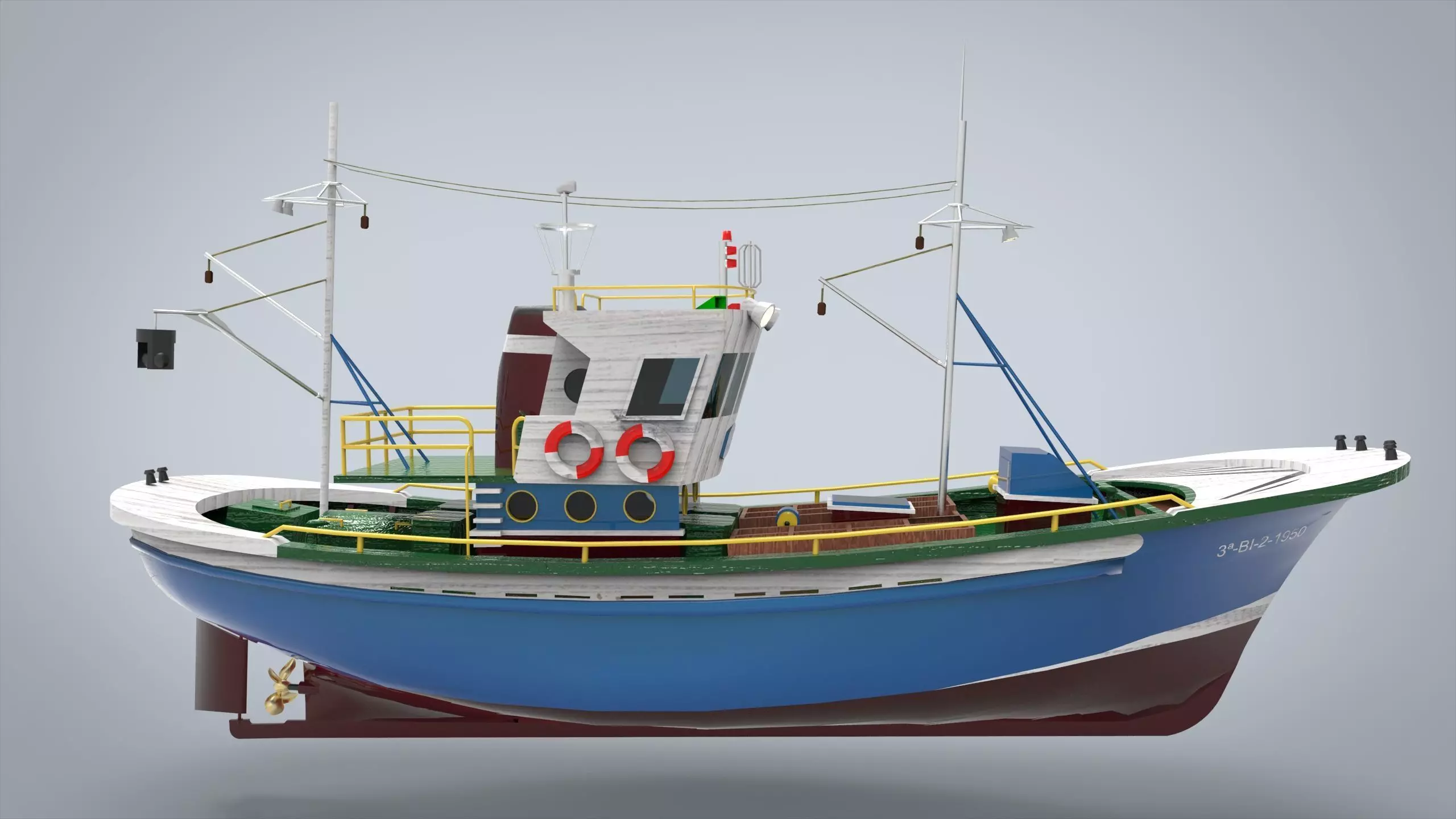 The model has material settings that define how surfaces look (color, shine, transparency, etc.).