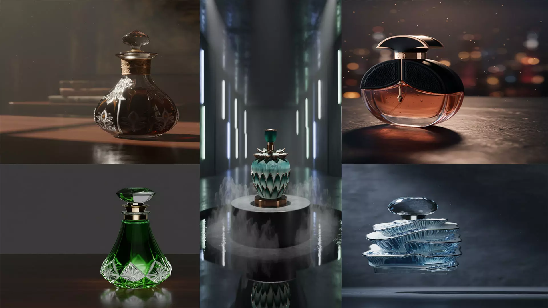 A premium collection of highly detailed 3D perfume bottles designed with elegance, luxury, and cinematic presentation in mind. This pack features multiple unique styles including vintage glass decanters, modern luxury fragrance designs, and artistic crystal-inspired bottles. Each model is crafted with attention to materials, reflections, and lighting response—perfect for product visualization, advertisements, branding projects, and high-end renders.