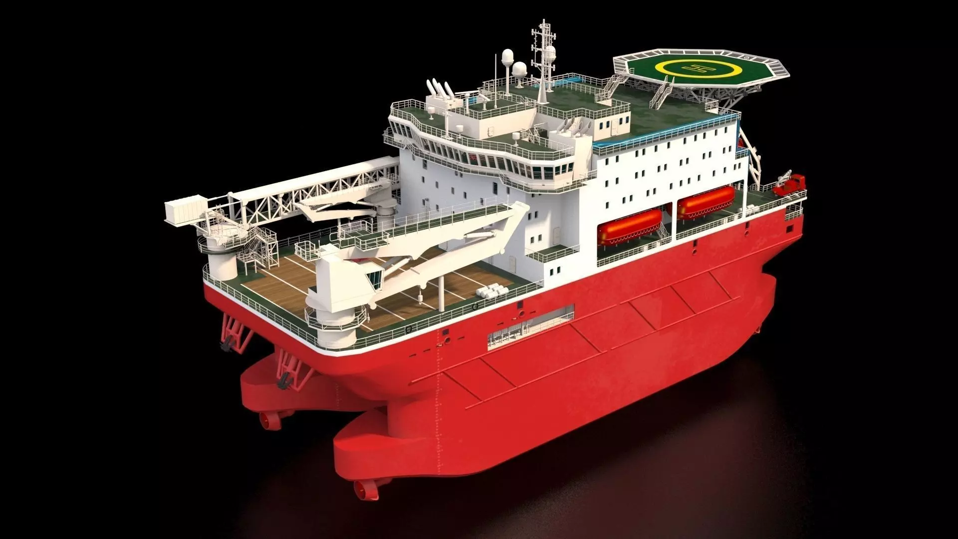 501 person offshore accomodation vesselShip is ready for video production3D High resolution model of this vessel, a multi-functional transfer gangway, 7 rescue ship included7 rescue boatsLength overall 84 m Breadth 32 m Modeled correctly scaled from blueprints, enough detail for close-up renders. Subdiv readyClosed model, no holes or lost polygons. No double sided materials.MATERIALS Materials are prepared for V-ray FBX files has only basic materials and will NOT render the same as in preview images. OBJ file has no materials, but has UVW coordinates intact. Archive contains all necessary maps and you can achieve same result in any other software and engineFILE FORMATS 3ds Max - Vray FBX OBJGENERAL Modeled in 3ds max. Preview images are rendered with V ray renderer. Render scenes are included.NOTE: Ocean, windmill and helicopter not includedAnalogue - Temis , Olympia