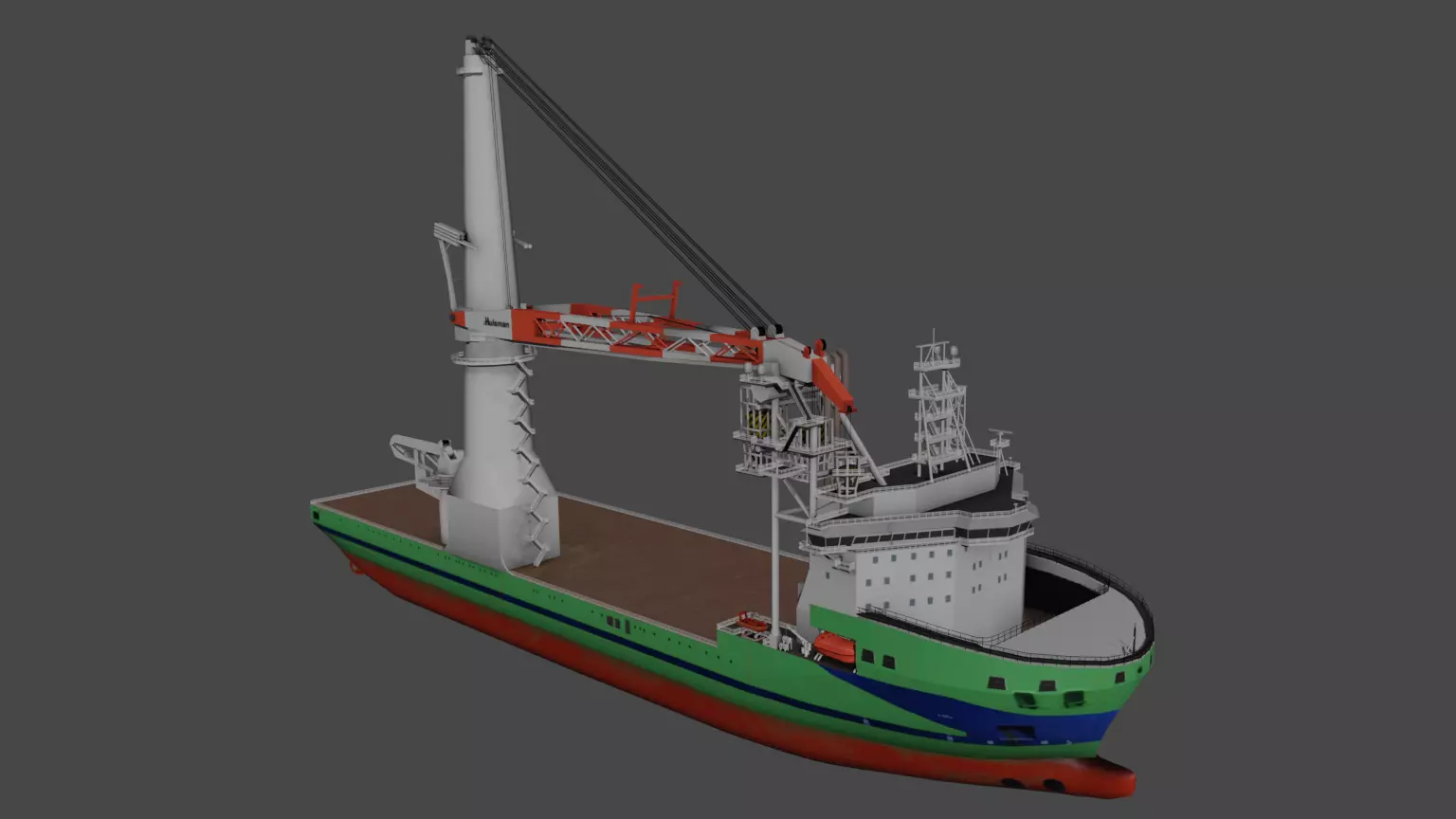 • This 3D model based on the real Offshore Heavy Lift Installation Vessel named Green Jade