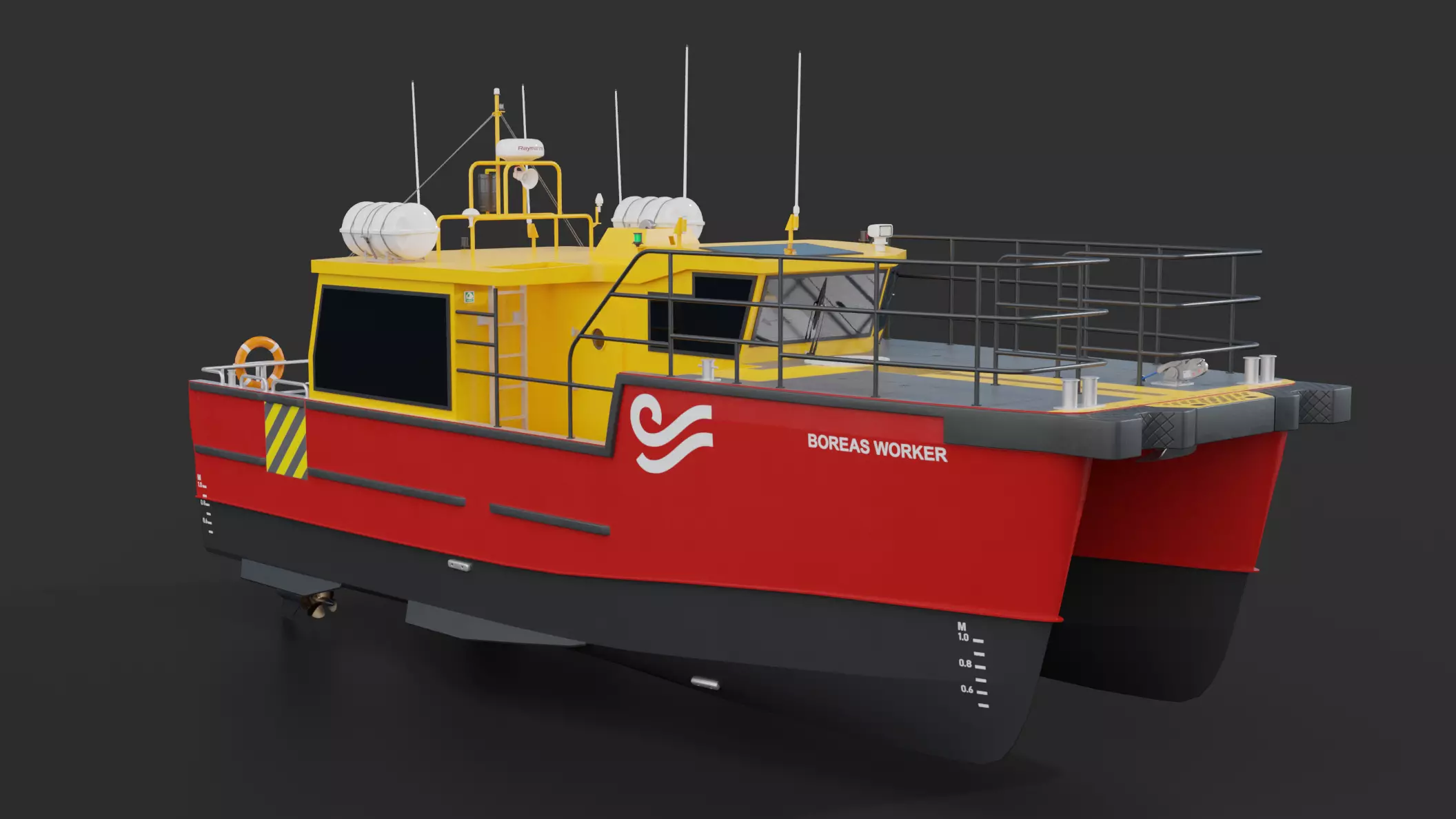 This is the first in a new series of cutting-edge offshore support vessels . Her length overall (LOA) is 12 meters and her width is 5 meters.
