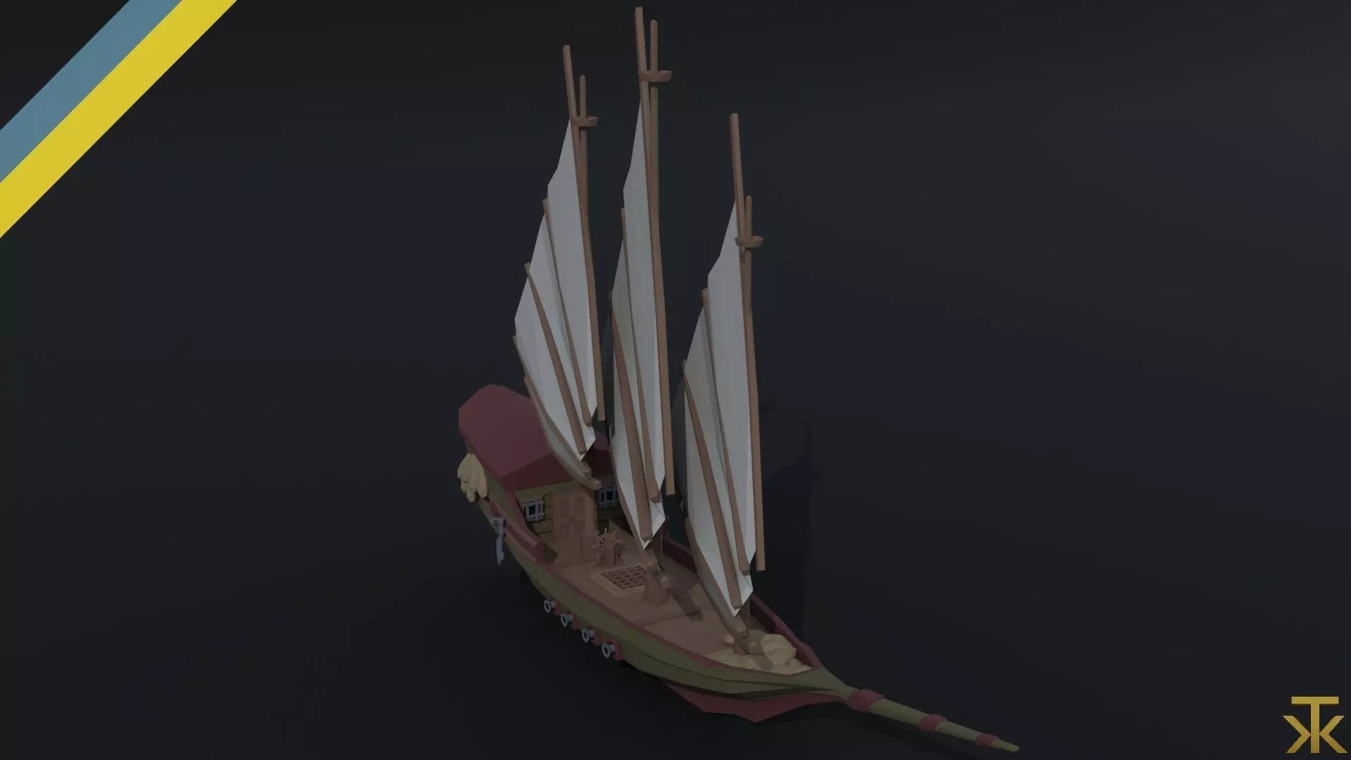 Cartoon medieval fantasy ship Polygonal Style Low-poly 3D model