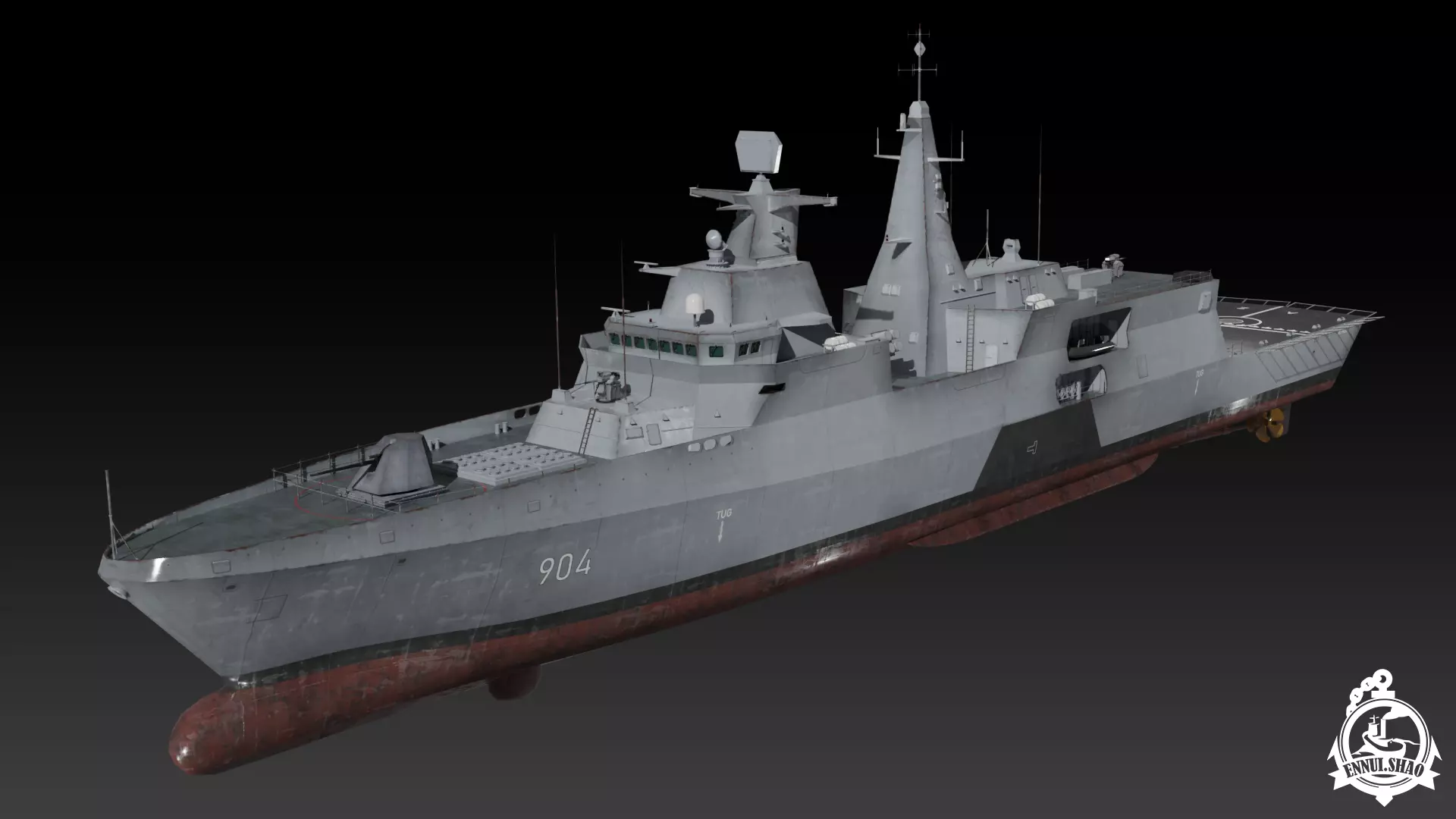 Egypt navy Al Aziz class frigate. One of MEKO A200 variation builded by Blohm Voss. Modeled with blender 3.3. 36 textures and 13 materials included. The model is game-ready, 195359 tris and 107374 vertices. Use PBR materials and UV mapped. OBJ and FBX format supported.
