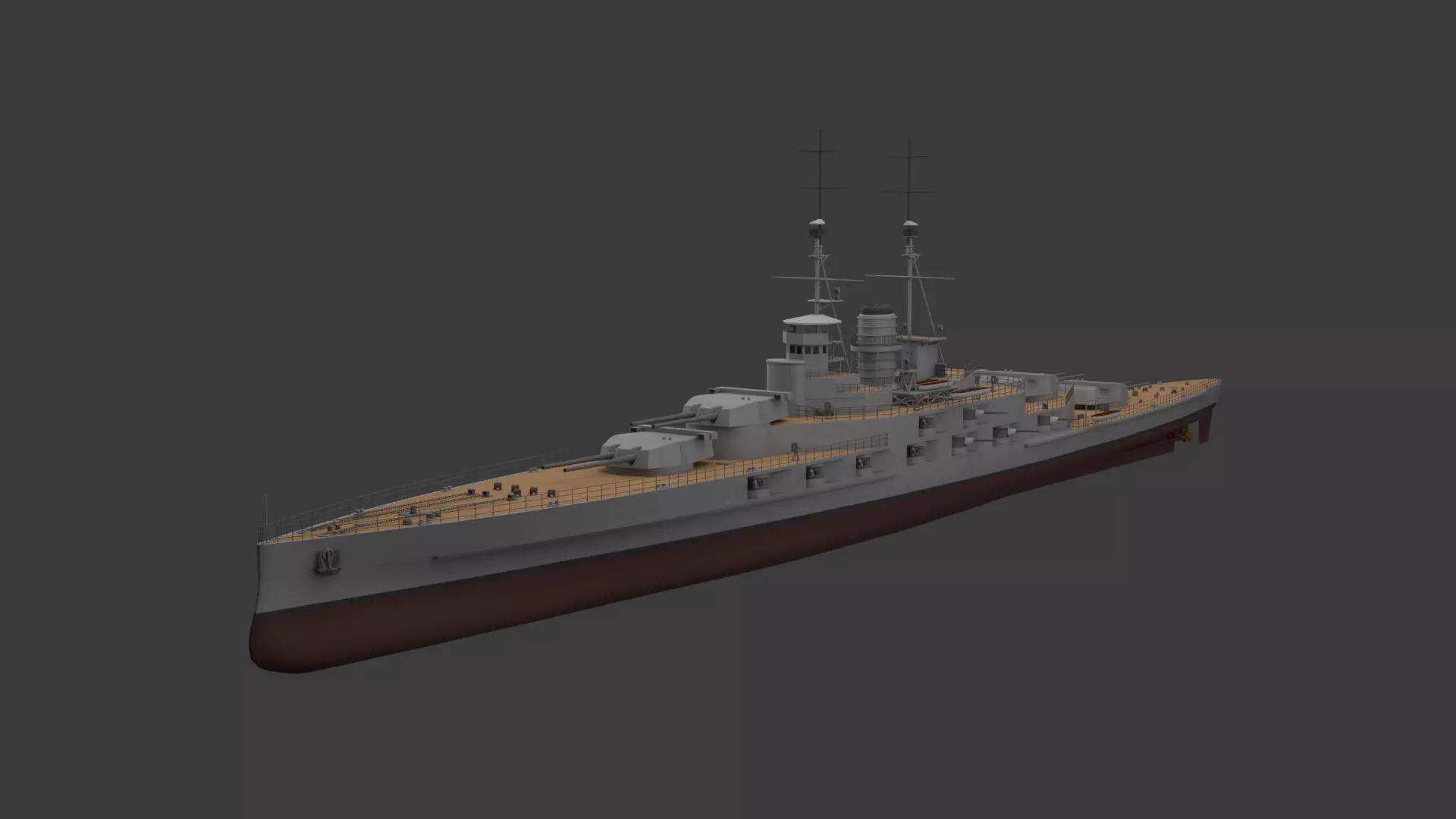 Since I had never modeled an early-to-mid 20th-century warship in Blender before, I expected it to take quite a while. Furthermore, with university classes starting on March 3rd, I anticipated the project would take at least 10 days.