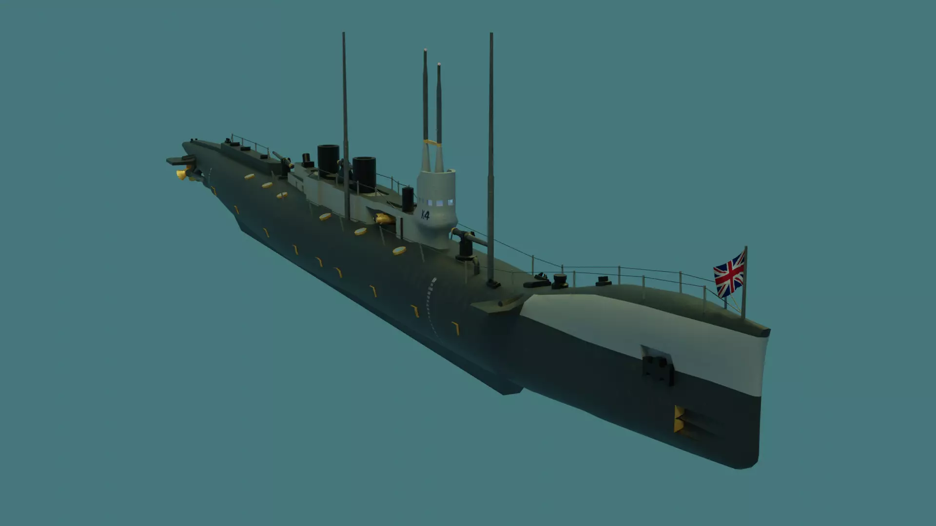 Note: The .blend files and their textures are in the 'HMS K4.blend.zip' file. Attention, if the HMS K4.blend.zip file is unzipped in the same folder, the textures will be automatically added to the model when it is opened in Blender.