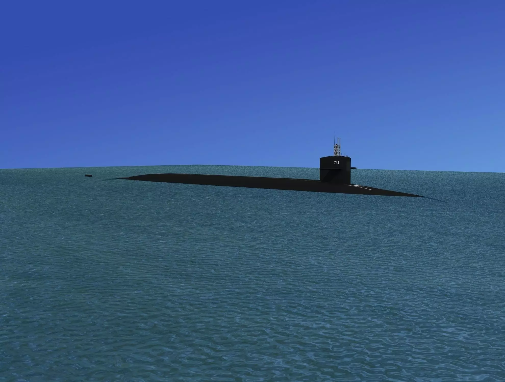 This model is very detailed, built near to scale and comes as shown with all textures and materials. It includes animateable propeller, opening launch tube hatches, hatches, retractable periscopes, antenna and handrails. The torpedo tube doors at the front of the ship can also be opened. For the re-designated SSGN boats, I have also installed 7 smaller launch tubes into each of the missile silos. Each of the 7 has its own sub hatch covering the interior launch tube.