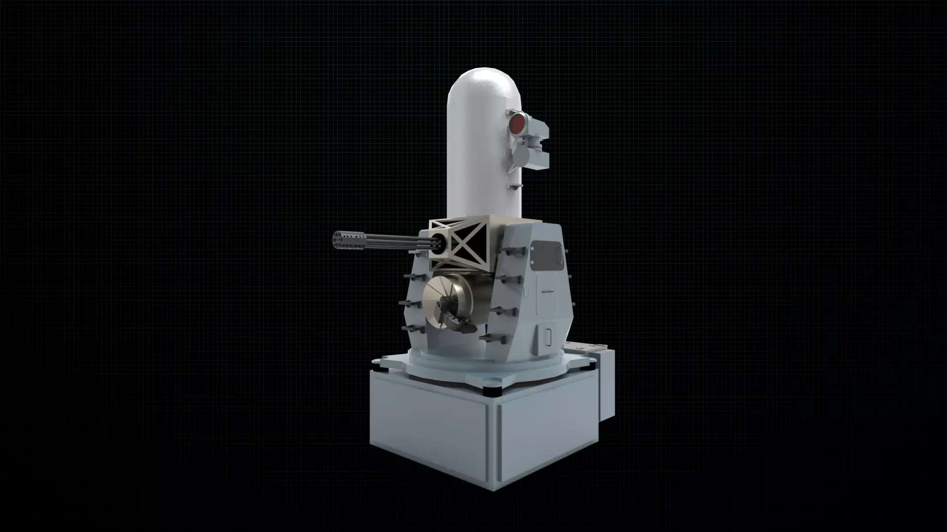 The Phalanx CIWS (pronounced sea-wiz) is a close-in weapon system for defense against incoming threats such as small boats, surface torpedoes, anti-ship missiles and helicopters. It was designed and manufactured by the General Dynamics Corporation, Pomona Division,[3] later a part of Raytheon. Consisting of a radar-guided 20 mm (0.8 in) Vulcan cannon mounted on a swiveling base, the Phalanx has been used by the United States Navy and the naval forces of 15 other countries. The US Navy deploys it on every class of surface combat ship, except the Zumwalt-class destroyer and San Antonio-class amphibious transport dock.[5] Other users include the British Royal Navy, the Royal Australian Navy, the Royal New Zealand Navy, the Royal Canadian Navy and the US Coast Guard (aboard its Hamilton- and Legend-class cutters).