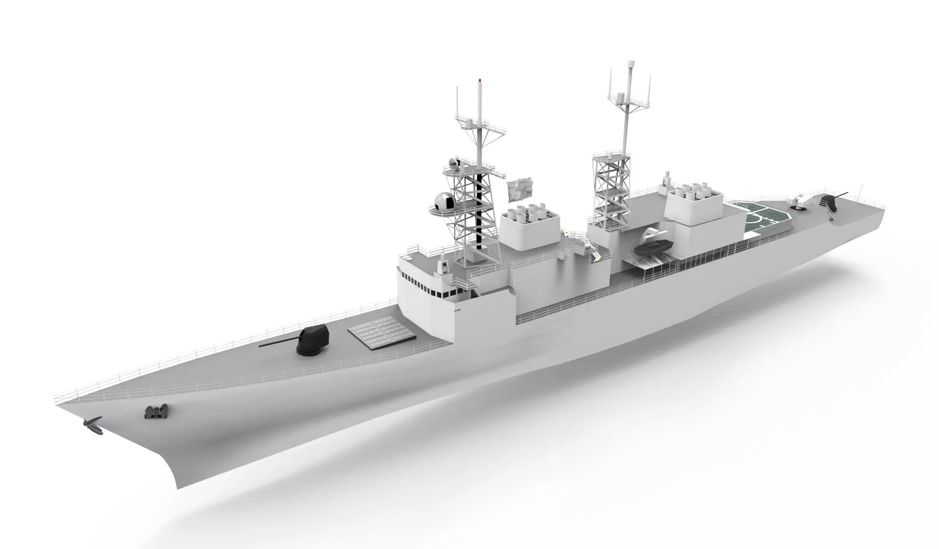 As built2 × 5-inch (127mm) 54 calibre Mark 45 dual purpose guns1 × 8 cell ASROC launcher1 × 8 cell NATO Sea Sparrow Mark 29 missile launcher2 × Mark 32 triple 12.75 in (324 mm) torpedo tubes (Mk 46 torpedoes)Later fitted2× quadruple Harpoon missile canisters2 × 20 mm Phalanx CIWS Mark 15 guns2 × quadruple ABL Mark 43 Tomahawk missile launchers (7 ships)1 x 61-cell Mark 41 VLS launcher for Tomahawk/ASROC missiles in place of the 8-cell ASROC launcher (24 ships).1 × 21 cell Rolling Airframe Missile launcher in some ships.Aircraft carried: 2 x Sikorsky SH-60 Seahawk LAMPS III helicopters.Aviation facilities: Flight deck and enclosed hangar for up to two medium-lift helicopters