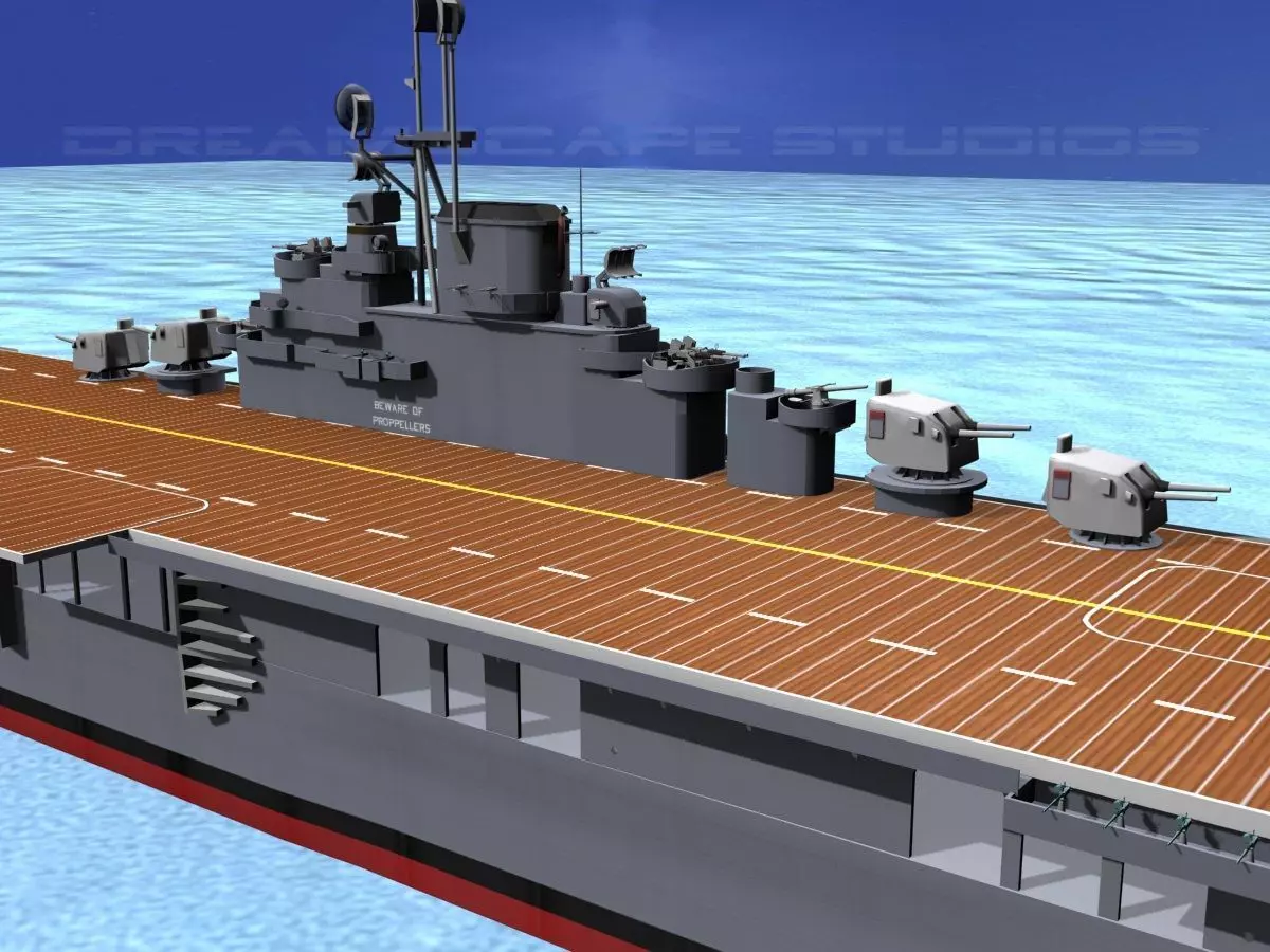 This model is excellent for video animation work! This model is built generally in approximate dimension and includes a lot of detail. It comes fully textured with all materials and textures and is available in many formats. It is built in the WWII configuration with very detailed and animateable 40MM anti- aircraft guns, 20 mm anti-aircraft guns, and four twin mounted 5” 38 caliber guns in turrets. It has radar and radio antenna built and the radar antenna are animated. The screws and rudder are also animatable. Elevators can be raised and lowered. These models render very well and look very realistic using good animation and rendering technique.