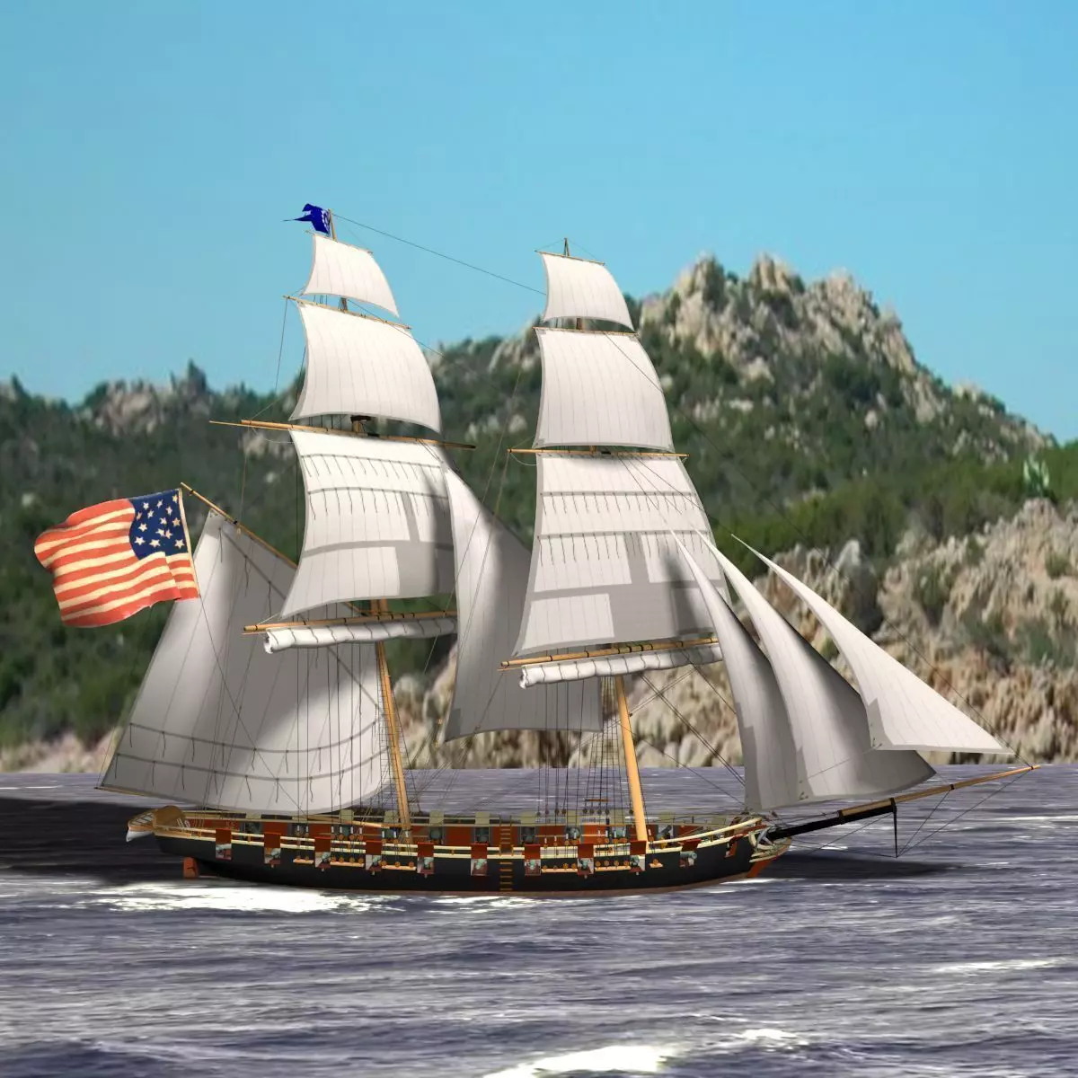 This in scale model represents the U.S.Navy Brig Eagle that participated and won an important battle during the 1814 Anglo-American War of Lake Champlain, on September 11, 1814. She was built under instructions of Lieautenant, later Master Commandant, Thomas Macdonough, and her command was given by the Secretary to the Navy to Master Commandant Robert Henley. The new commander, unaware of the name Eagle, already assigned by Macdonough, gave her the second name of Surprise.