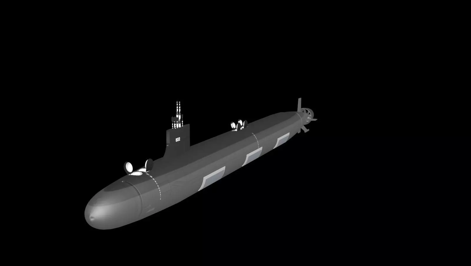 This model is built near to scale at 377 feet long and a beam of 34 feet. The model has animatable periscopes and propeller inside the duct. The model also has animatable missile launch hatches on the bow for the two MLS systems. The hatch can be opened revealing the multi-tube (6 tube) launch system. In addition the model also includes the additional 4 MLS launch systems on the boat about half way back from sail to propeller. These 4 hatches open to reveal another 24 launch tubes for various non nuclear ballistic missiles. Missiles like anti ship missiles, cruise missiles and other conventional offensive and defensive missiles. Like the real boat the MLS tubes can be removed from the farthest tube aft to reveal that it reast inside of another tube capable of launching Special ops equipment and teams.It is fully textured and painted and comes with the paint scheme as shown. All materials are UVW mapped and applied. Most materials are planar mapped and major materials include texturing. All textures and materials are included with the paint scheme as shown. 3ds Max models are grouped for easy selection, and objects are logically named for ease of scene management. No cleaning up necessary just drop your models into the scene and start rendering. No special plugin needed to open scene. Model does not include any backgrounds or scenes used in preview images. Sub is available in several different formats. These models render very well and look very realistic using good animation and rendering technique Model can be used in an animation or static position within an animated video or possibly for programming for a simulation application. This 3D model was not designed for 3d printing, these are digital files only for visualization and gaming.The Virginia class, also known as the SSN-774 class, is nuclear-powered cruise missile fast-attack submarines, currently in service in the United States Navy.
