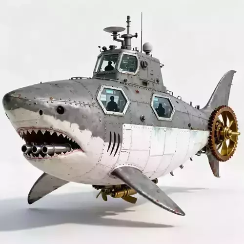 Description Rule the underwater battlefield with this fearsome Great White Shark Military Submarine 3D Model. A terrifying fusion of apex predator biology and heavy industrial engineering, this asset is the ultimate unit for naval combat games, dieselpunk adventures, or sci-fi underwater exploration titles.