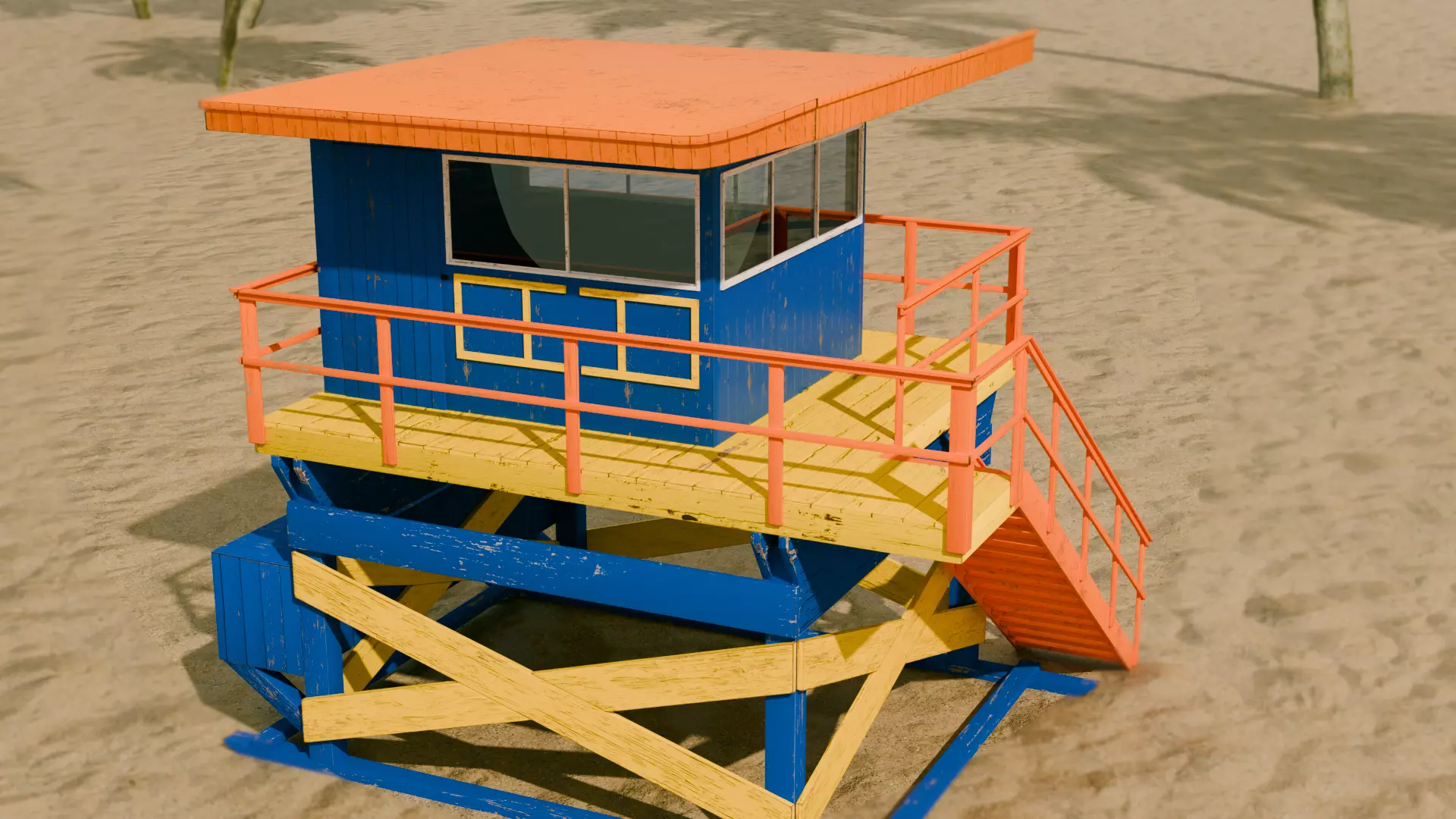 American Beach Lifeguard Tower, in the style of the towers present in Miami, Malibu, etc.