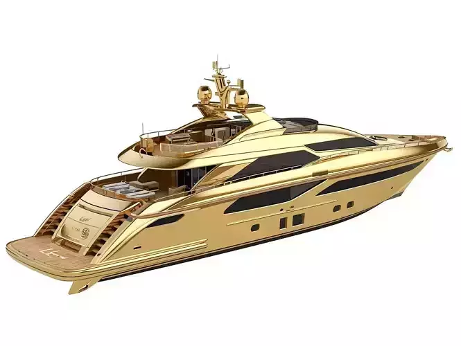Tagsluxury yacht, gold boat, 3D model, metallic exterior, premium vessel, maritime asset, sleek design, PBR materials, gold yacht, high-end lifestyle