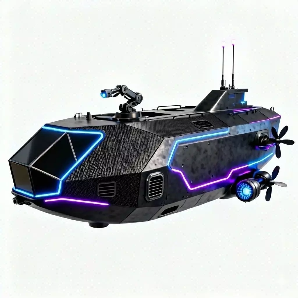 Files Included: FBX, GLB, OBJ, STL, ZIP (Textures). Quick Tip: The Emission Map is your best friend here. Crank up the intensity for the blue and purple strips and the engine glows so they bloom in the dark underwater environment, acting as the vehicle's own light source.
