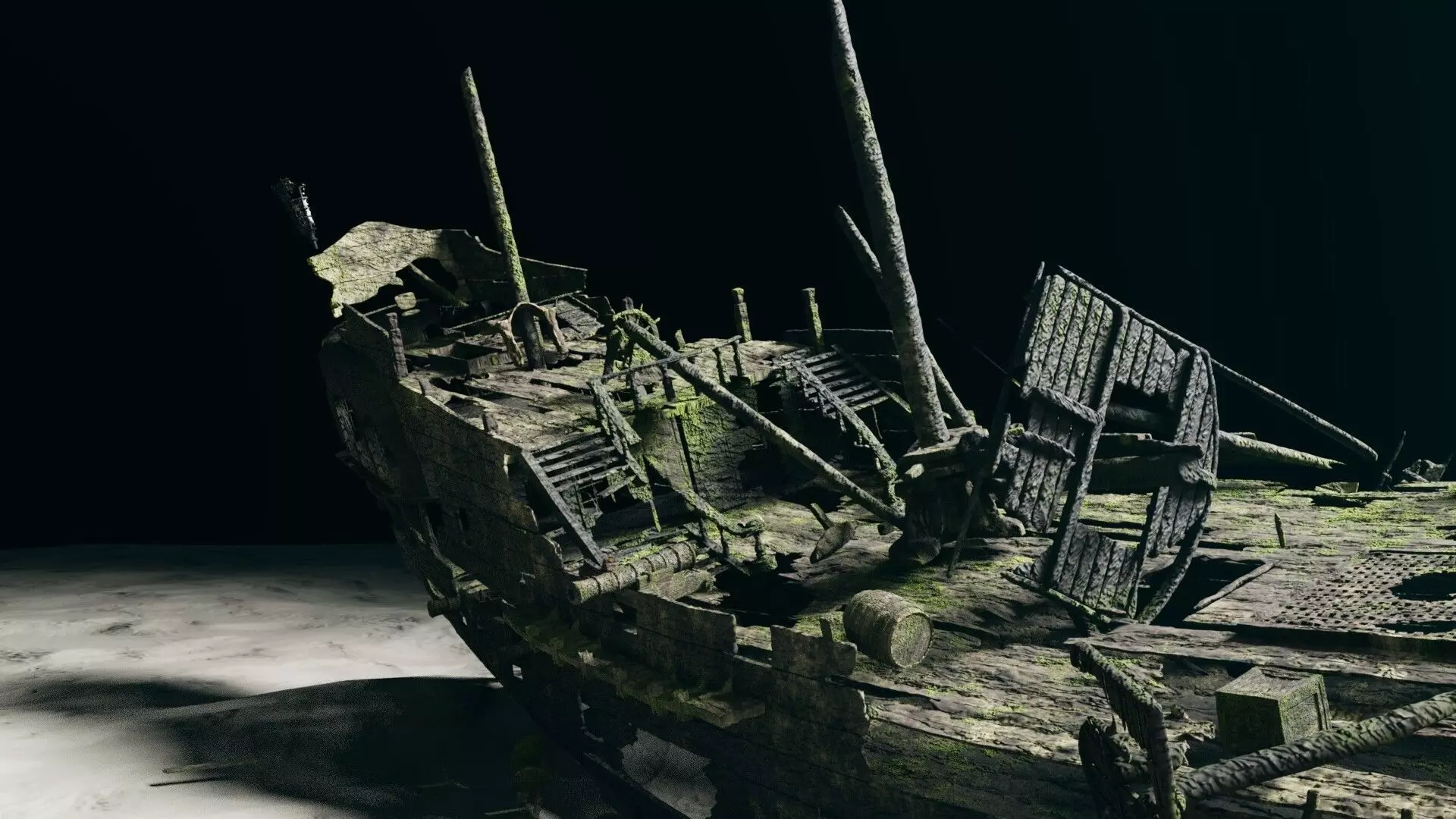 Beneath a moonless tide, the remains of the Pirate ship lie scattered like broken memories across the ocean floor. Her once-proud hull is splintered, ribs exposed to the slow, patient pull of the current. Tattered sails drift like ghostly shrouds, whispering stories of cannon fire, betrayal, and the final desperate stand that sealed her fate. Barnacles claim the carved figurehead, its hollow eyes still fixed on the horizon it will never reach. Shafts of pale light pierce the water above, illuminating drifting ash and silver fish that weave through shattered decks where footsteps once thundered. Time has softened the wreck, but not its legend—every creak of timber echoes with the courage, greed, and sorrow of those who sailed her, reminding the sea that even the mightiest legends eventually bow to the deep.