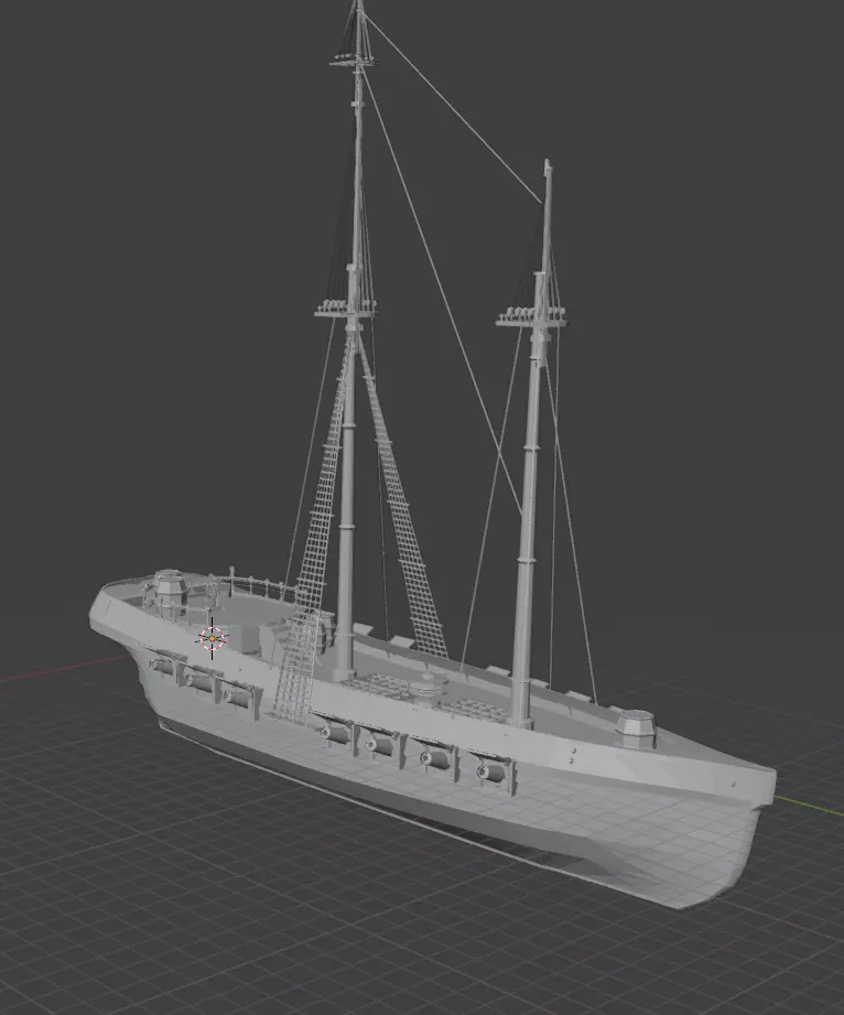 a raw mesh sail boat inspired by pirates untextured