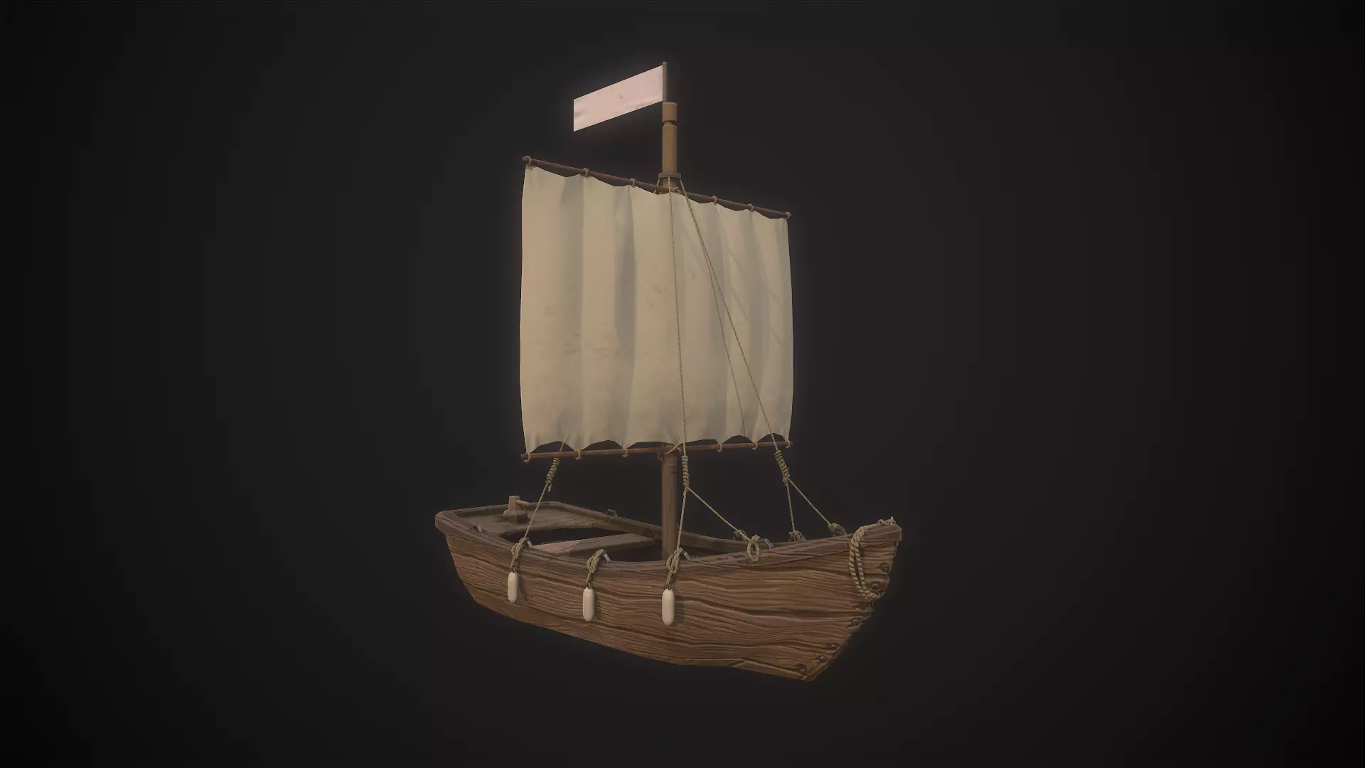 FBX OBJMaya fileTextures : ORM (occlusion,roughness,metalness), Diffuse and normal maps, for both boat and sail.