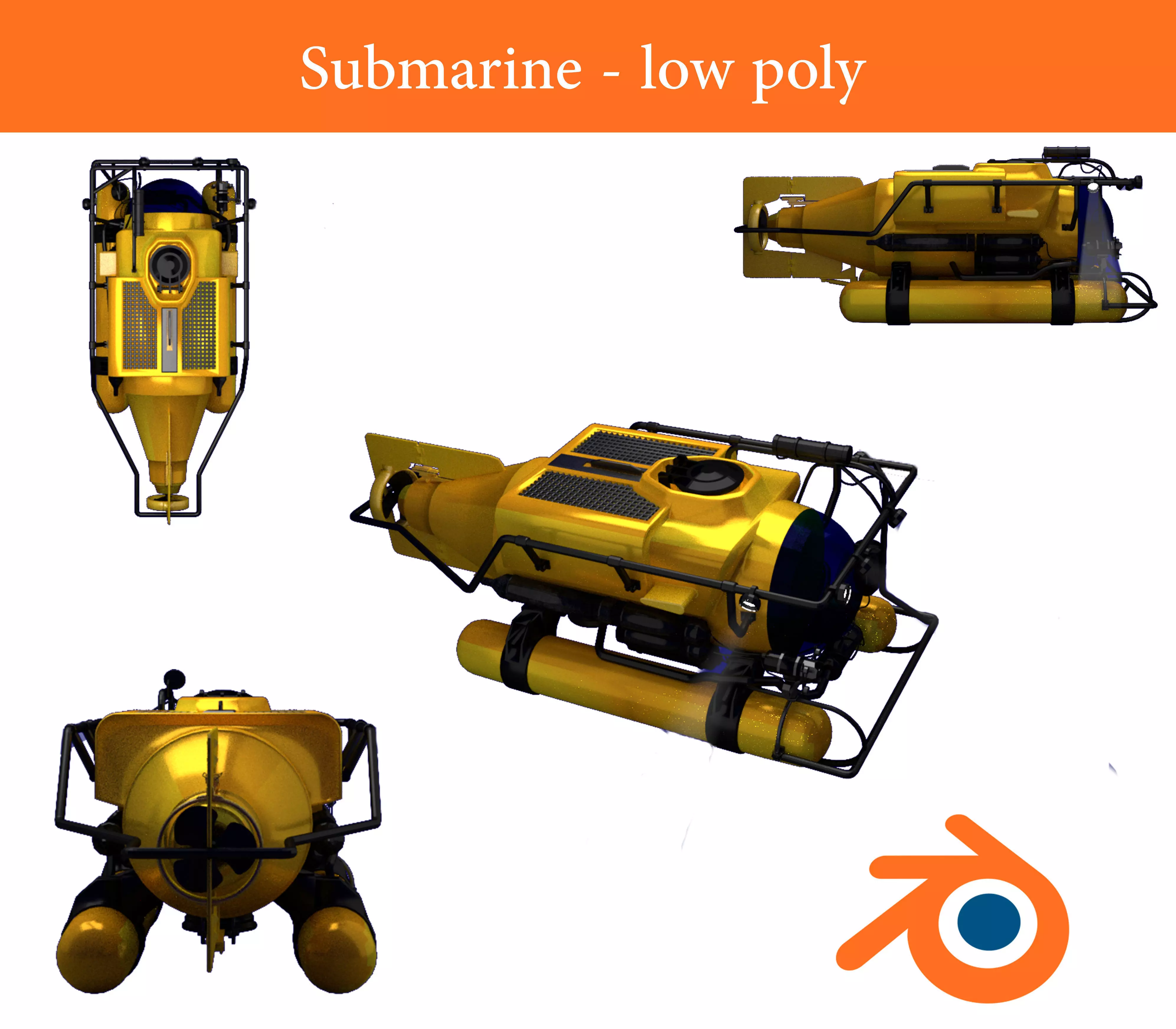 submersible ,is a low poly model of watercraft , designed to be used in game development