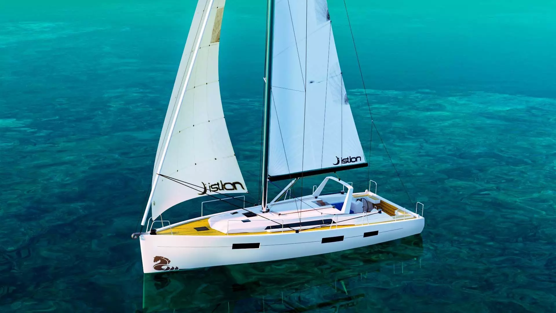 **High-quality 3D model of a Beneteau Oceanis sailboat, designed for realistic marine visualization, architectural renders, and game environments. This model features a clean, quad-based topology and detailed deck geometry, including winches, ropes, and teak wood texturing.