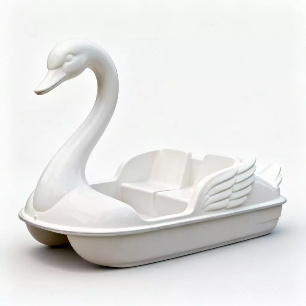 Twin-Pontoon Base The underside features a stable catamaran-style hull (twin pontoons), which provides the necessary buoyancy and balance for a water-based vehicle. The transition between the decorative swan top and the functional base is seamless and structurally sound.