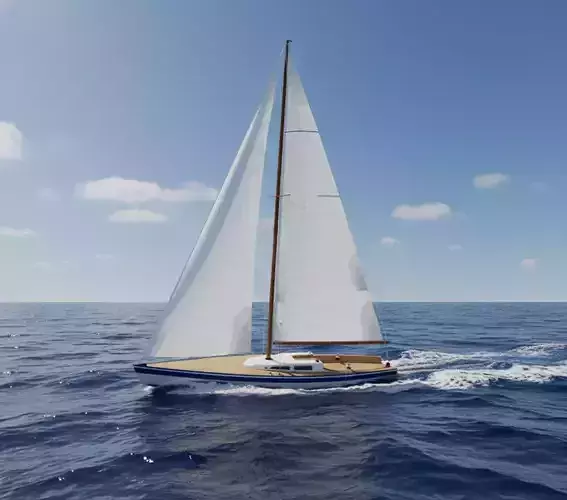 High-quality 3D model of a beautiful classic wooden sailing yacht with sloop rig, inspired by traditional early 20th-century designs, perfect for vintage marine scenes, historical visualizations, games, animations, or any nautical project requiring timeless elegance. This graceful monohull features a varnished wooden hull with blue and white trim, a tall wooden mast, and fully deployed crisp white sails for an authentic wind-powered appearance.Key features: