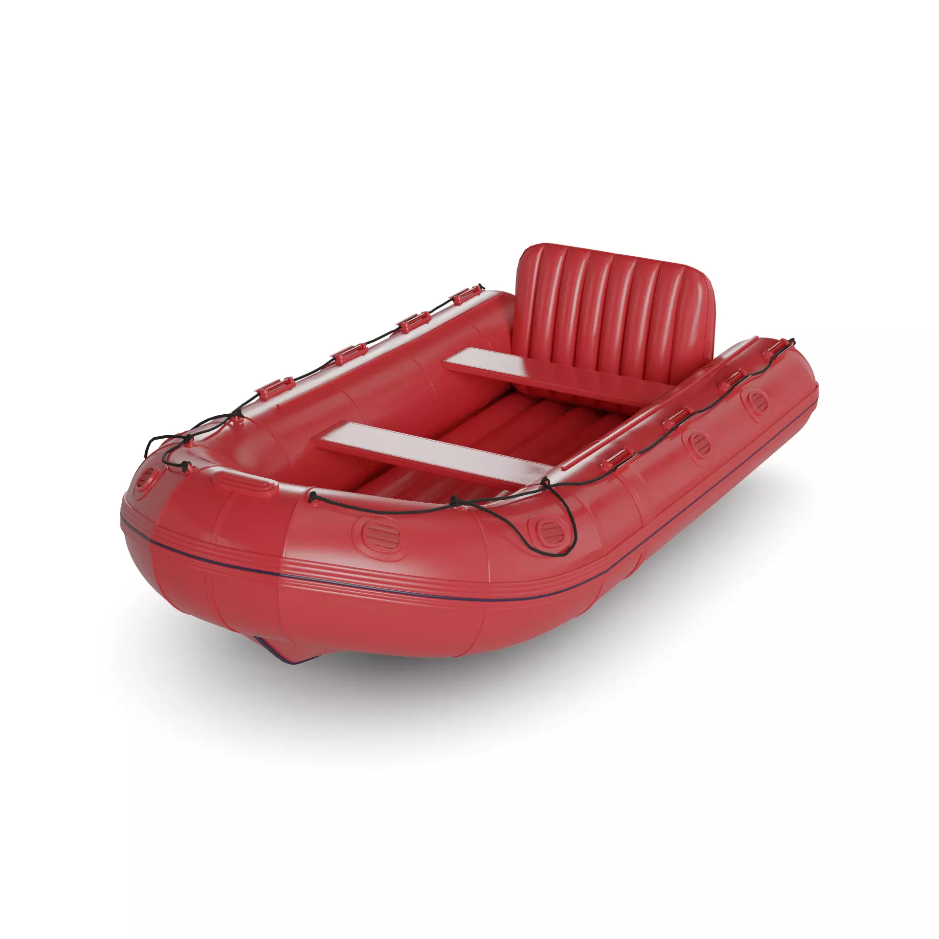 A historical inflatable dinghy in a vibrant red color, featuring a sleek and streamlined shape with multiple air chambers for added safety. The material is a smooth and glossy PVC, giving it a modern and durable appearance, perfect for leisurely cruising on calm waters.