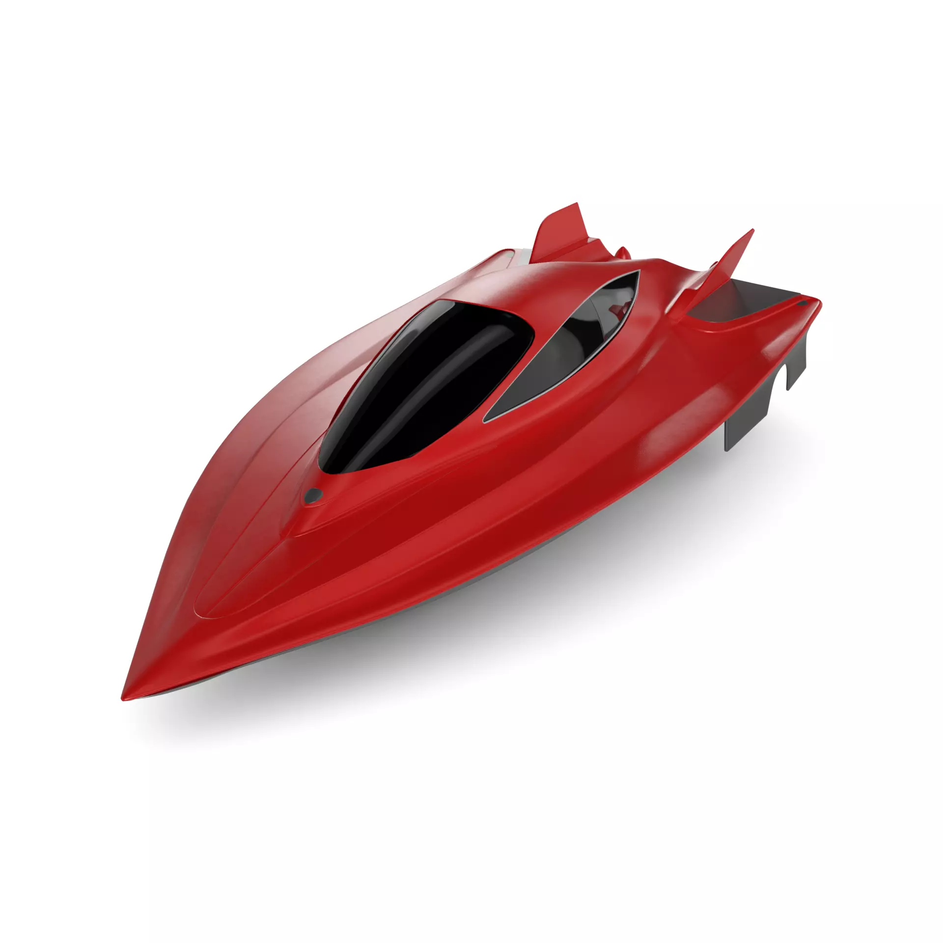 A sleek and modern hydrofoil boat designed for sport, featuring a vibrant red color with a glossy finish, equipped with a streamlined shape and hydrofoil technology for maximum speed and agility on the water, perfect for adrenaline-filled adventures on the waves in the current timeline.