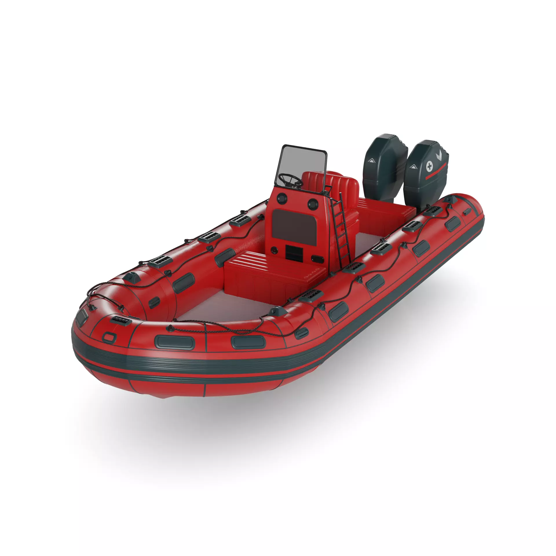 A professional-grade inflatable boat in a striking red hue, designed for civilian water activities in the current timeline. The boat is equipped with multiple air chambers for added security, along with a reinforced bottom for extra durability in rough waters.