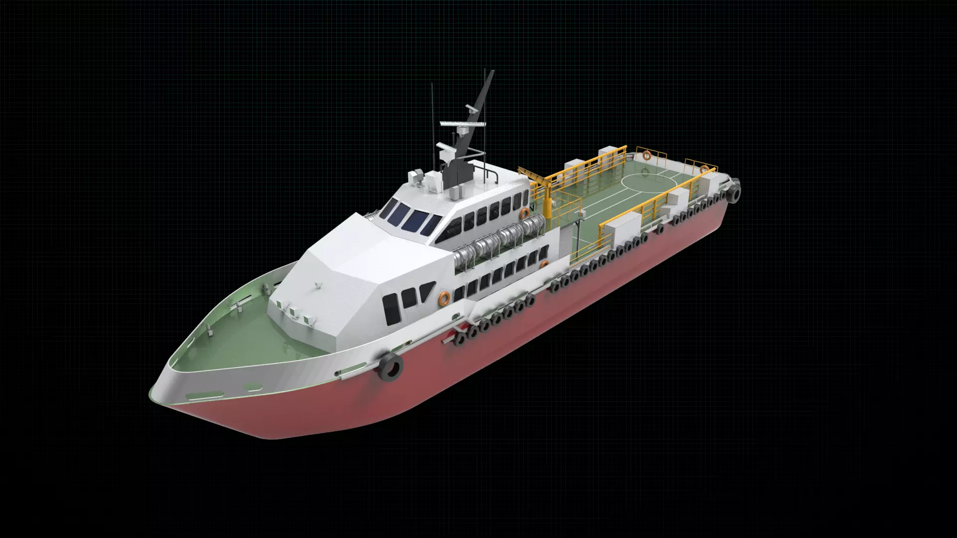 Offshore crew boats are equipped with full galleys, dining areas, heads with showers, and staterooms for the crew. Overnight accommodations for passengers usually are not provided aboard crew boats