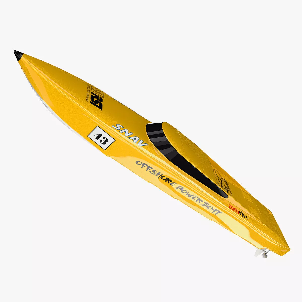 This is a model of a Offshore Powerboat.<br/><br/> * Originally created with 3ds Max 2010 <br/><br/> ||USAGE|| <br/><br/> * This model is suitable for use in broadcast, high-res film close-ups, advertising, design visualization, forensic presentation, etc.] <br/> * The model is accurate with the real world size and scale. <br/><br/> ||SPECIFICATIONS|| <br/><br/> * This model contains 8 separate objects. <br/> * This model contains 9405 polygons with MeshSmooth OFF. <br/> * This model contains 94856 polygons with MeshSmooth ON - 2 Iterations. <br/> * This model is included in two versions V-Ray and mental ray. Both have materials and textures included.<br/><br/> || PRESENTATION IMAGES ||<br/><br/> * All preview images are rendered with V-Ray 2.1 as Renderer <br/> * Lights and cameras are not included in the file. <br/><br/> || TEXTURES ||<br/><br/> * There is 1 texture in the scene. <br/> * Texture size 4096x4096<br/> * Multiple Texture Resolutions are included. <br/> * PSD Texture included. <br/><br/> || GENERAL ||<br/><br/> * Model is built to real-world scale <br/> * Units used: meters<br/> * Object Lenght 22m <br/> * Scene objects are organized by groups.<br/> * No third-party renderer or plug-ins needed for mental ray version.<br/><br/> || ADDITIONAL NOTES ||<br/><br/> * File formats other than 3ds Max exported as base mesh (not smoothed)<br/> * Model represents 76 of hours of 3D work<br/><br/> *If you have any questions, you can contact me through support. Just send a support ticket! *