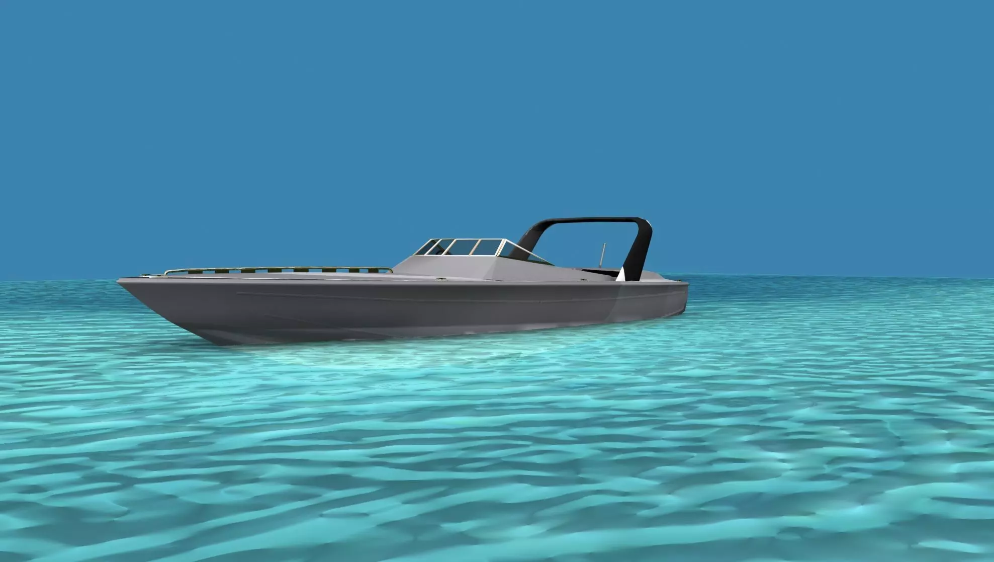 This is a fictional ocean going cigarette racing boat that would be popular with the wealthy racers or speed boat enthusiast. It has twin engines driving two water jets and seats for six. The fore cabin entry is modeled.
