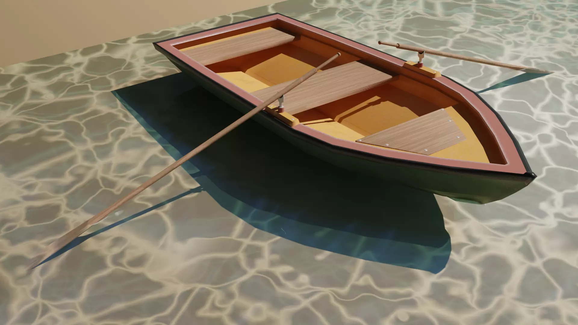 Row boat with Oars Low poly 3D model Low-poly 3D model