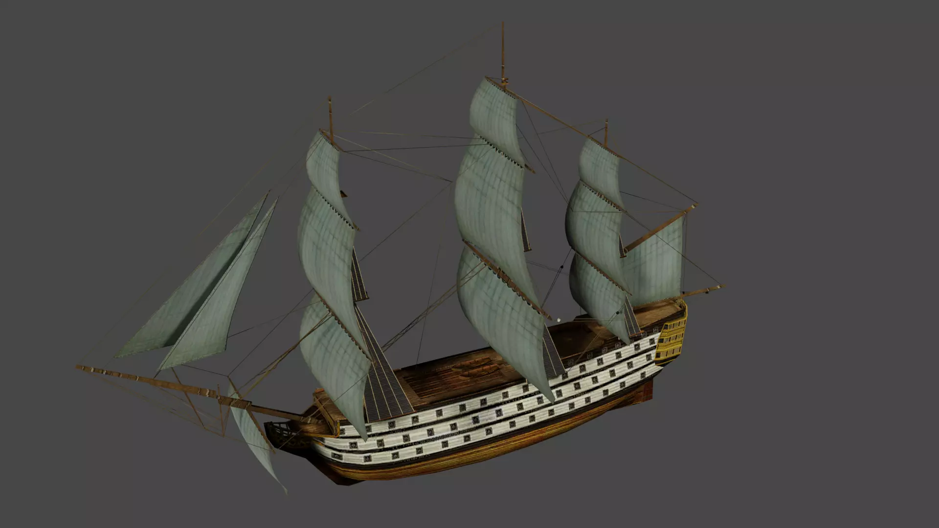 The model has material settings that define how surfaces look (color, shine, transparency, etc.).