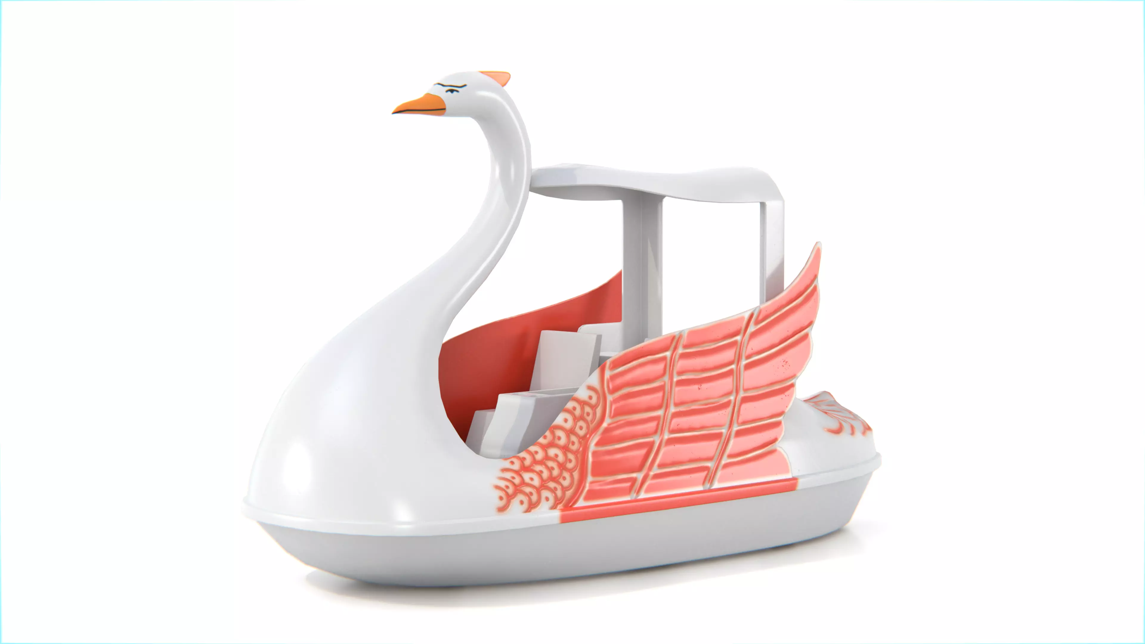 This charming swan-shaped pedal boat features a detailed fiberglass-style design with vibrant red wings and a sculpted head, giving it a whimsical yet iconic look commonly seen in public parks and water attractions. The model includes a covered roof for shade and a two-seat cockpit complete with cup holders and a storage tray.