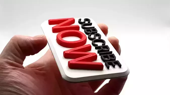 A 3D printable 'Subscribe Now' button.Demonstration model was printed at a 200% scale.