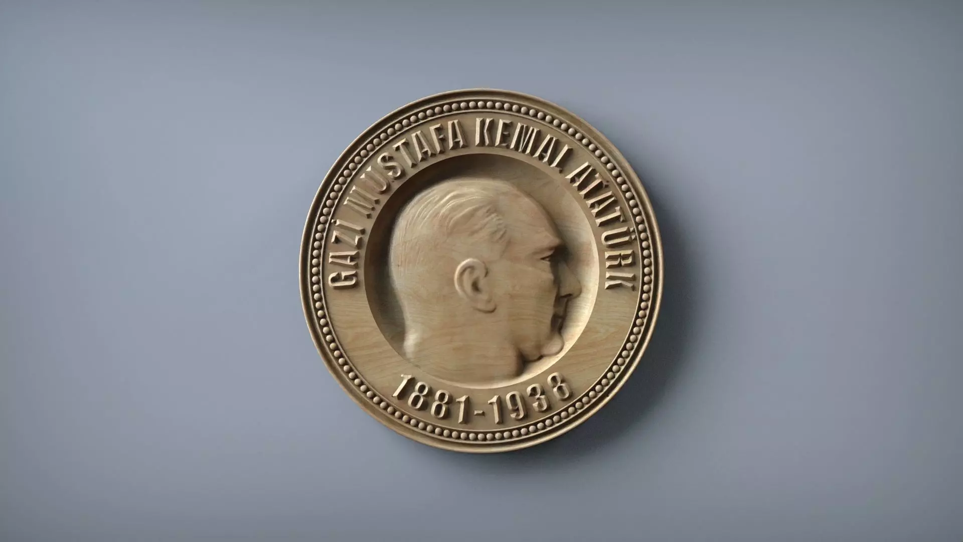 Honor the legacy of Gazi Mustafa Kemal Atatürk, the founder and first President of the Republic of Turkey, with this detailed medal-style 3D model. This STL file is ready for both CNC machining and 3D printing, making it ideal for commemorative pieces, wall plaques, badges or decorative medallions.