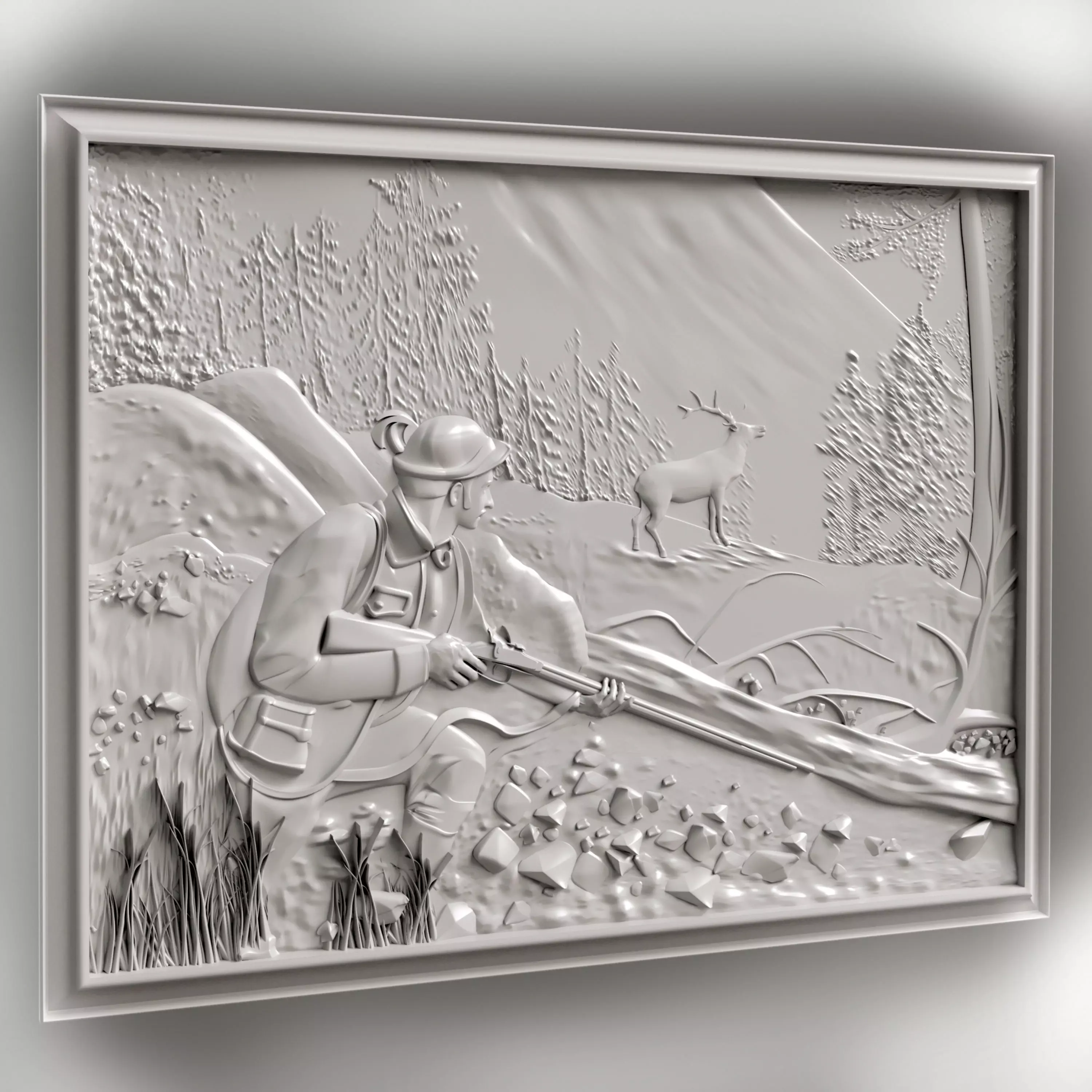3D stl model of a hunter on the hunt for a CNC router.The 3d model can be used for interior decoration, creating scenes in your works, but this model was created specifically for printing on 3d printers and making milled products on machines with numerical CNC software