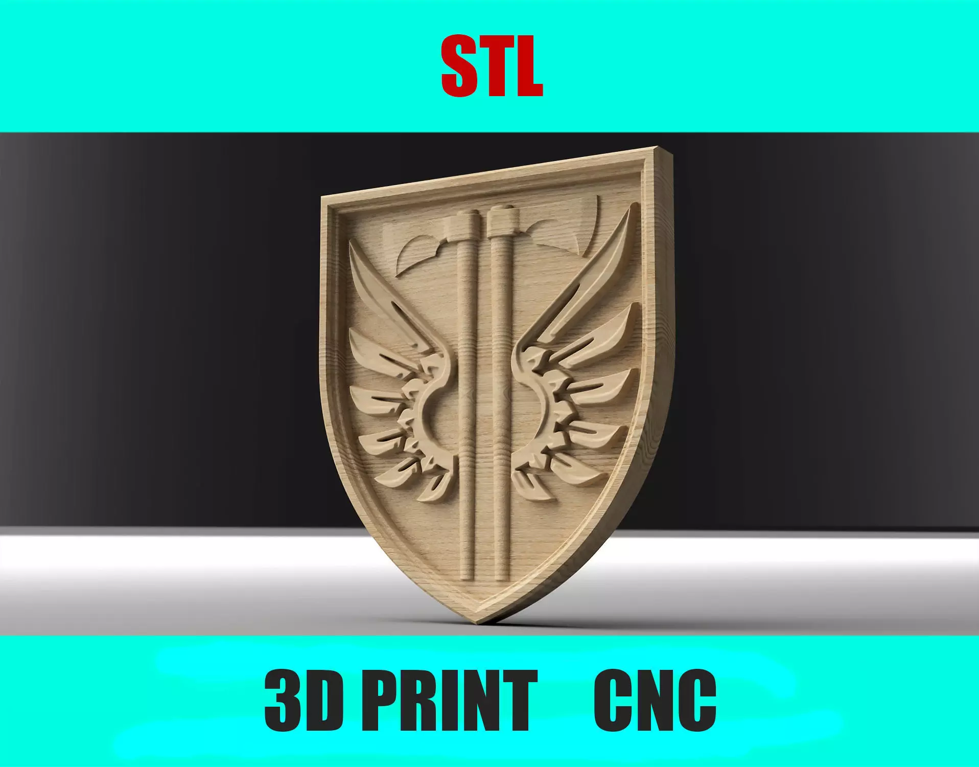 This is a 3D model of the 77th Airmobile Brigade emblem, designed as a shield-shaped plaque. Overall size: 350×400 mm, thickness 35 mm.The detailed relief is perfect for: CNC milling Laser cutting & engraving 3D printing (scalable to your needs) Digital projects or wall decoration