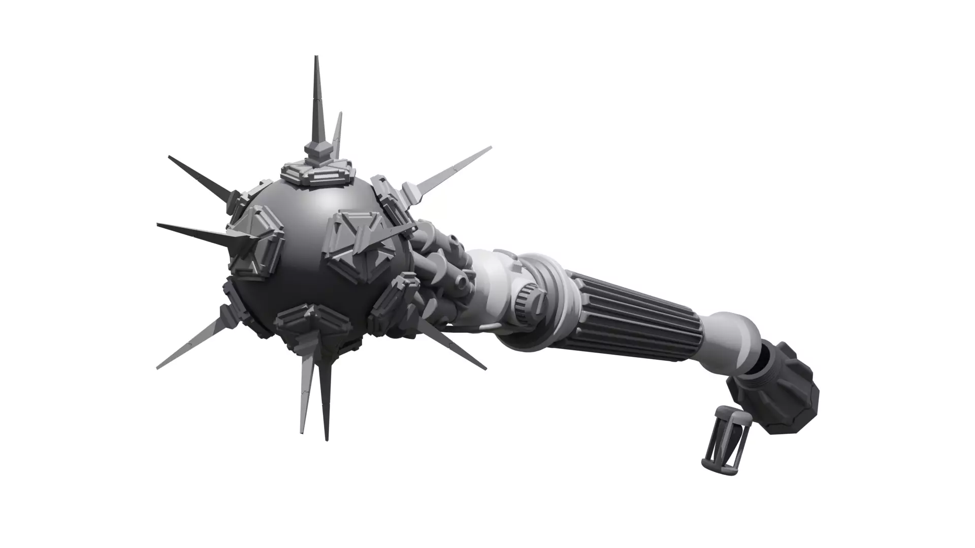 L - 445 mm without the spinesR - 90 mm (sphere) without the spinesR - (handle) - 40 mm