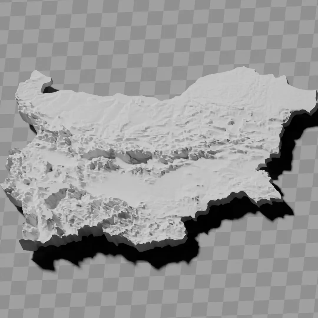 изрязан модел с преувеличен терен / топология [версия с изкривяване по проекцията на Меркатор + неизкривена версия]