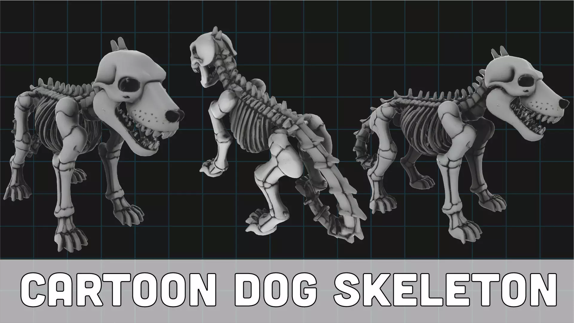 cartoon dog skeleton, 3d dog skeleton, halloween skeleton animal, spooky dog model, game ready skeleton dog, stylized bone animal, low poly dog skeleton, halloween 3d asset, dog skeleton fbx, skeleton creature 3d, STL dog skeleton, cartoon bone monster, fantasy skeleton model, printable dog skeleton, rigged cartoon skeleton