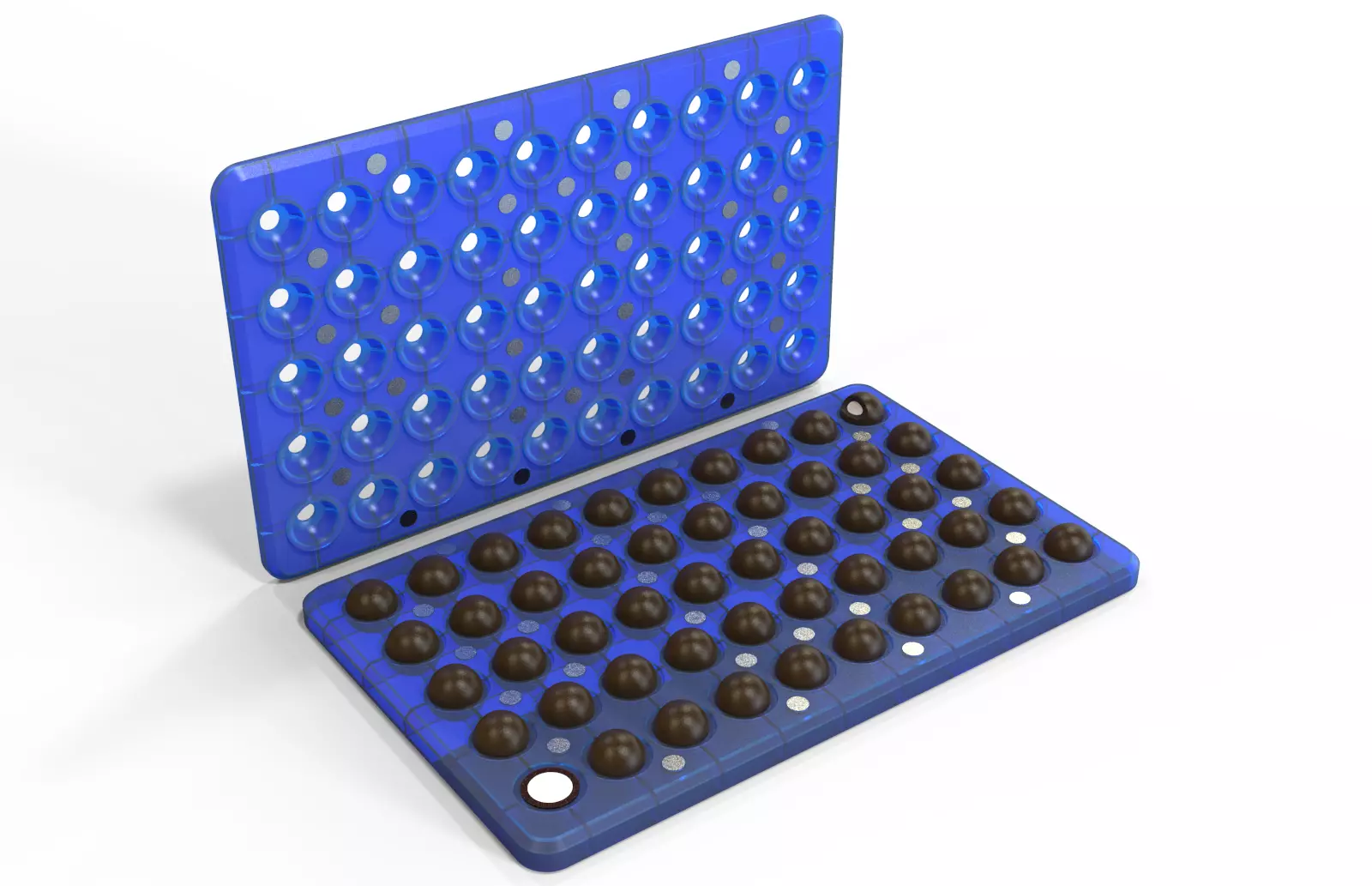 This is a chocolate mold. You can make ball chocolate with this mold. It has two parts. Uppart part and lower part. Upper part contain half part of the ball and lower part contain other part of the ball. Both parts are attached by magnets. Magnets diameter 10mm and thickness 1mm. Chocolate ball diameter 24mm. Magnet link below,https://www.amazon.in/GMT-Ceramic-Ferrite-Refrigerator-Projects/dp/B0B86JYDHR/ref=sr_1_11?keywords=button+magnet&qid=1666696800&qu=eyJxc2MiOiI1LjI2IiwicXNhIjoiNC41NCIsInFzcCI6IjMuMTQifQ%3D%3D&sr=8-11