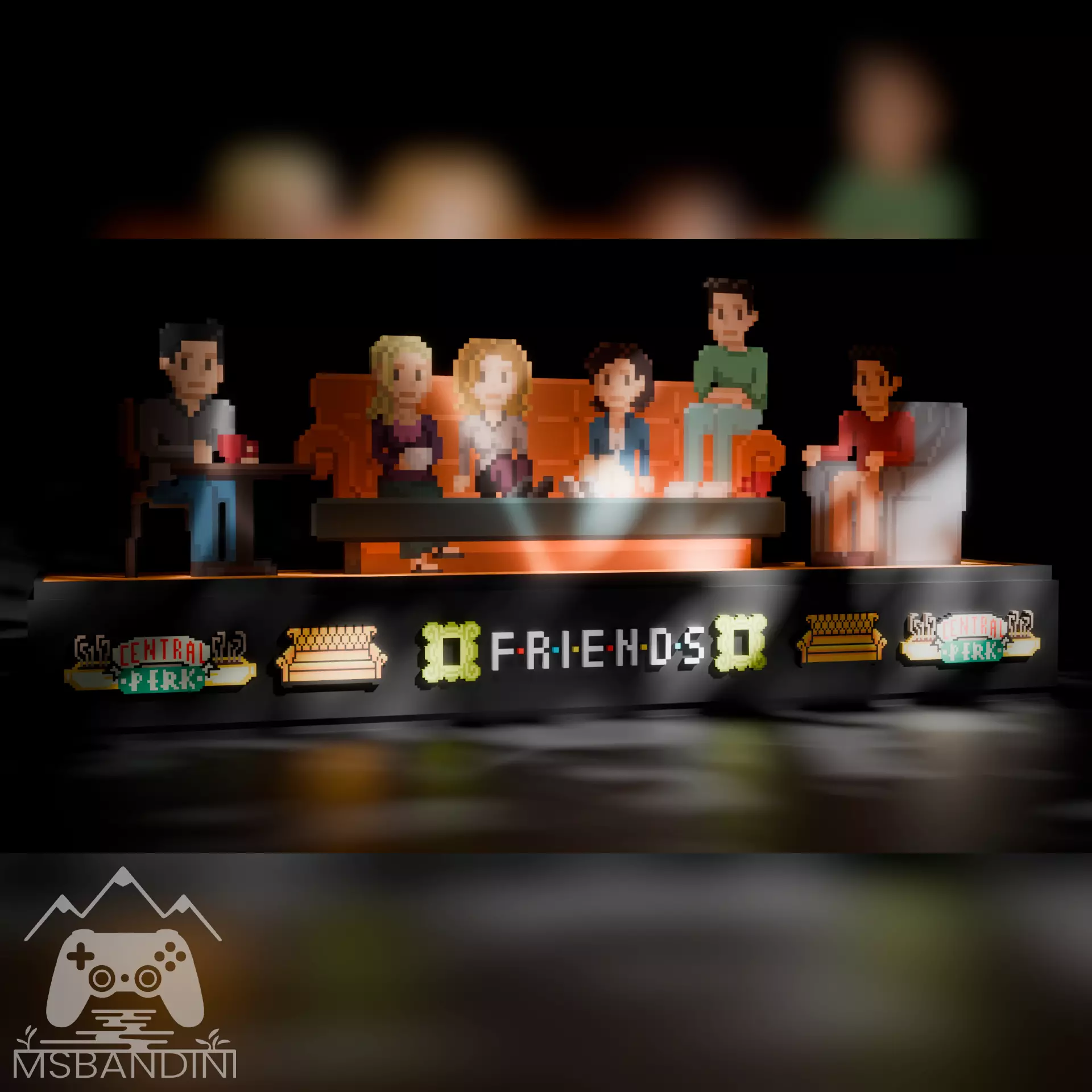 This 3D model is a pixel art ornament inspired by Friends, designed to capture the nostalgic essence of retro series. With a three-dimensional style that highlights each pixel, it offers a unique aesthetic that blends classic and modern elements.